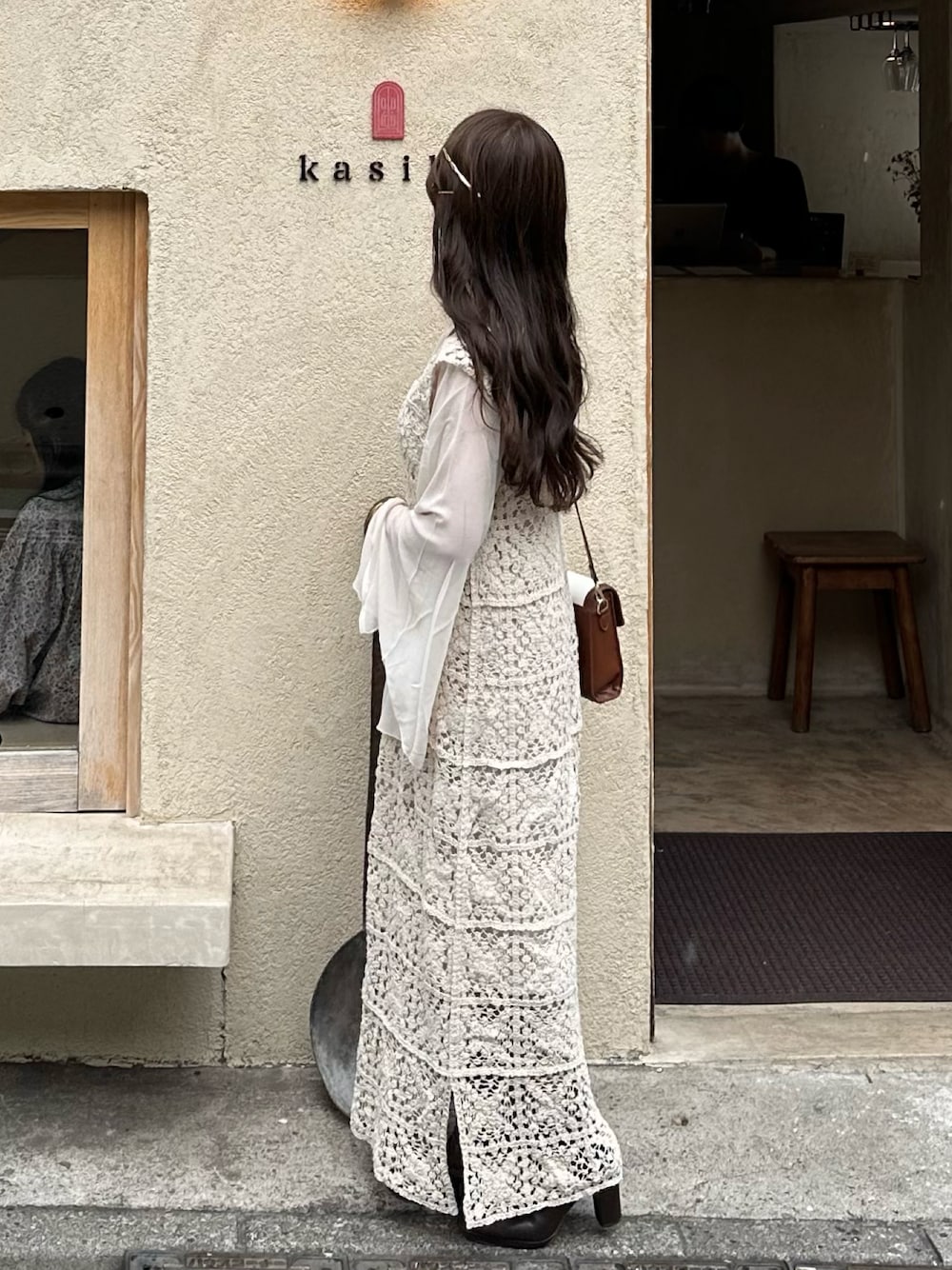 m a p oのワンピース「【お気に入り登録6.9万人!】【サイズ展開あり】クロシェロングワンピース」を使ったコーディネート