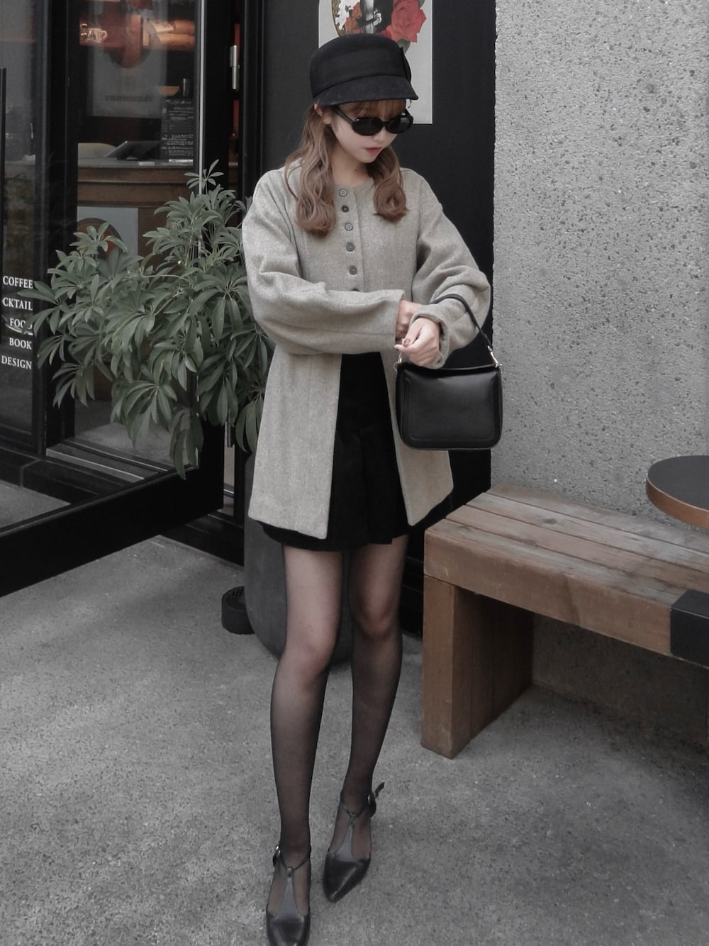 久しぶりに友達とカフェに行った日のコーデ。 黒系アイテムでエレガントさをプラスするのが最近のブーム! Instagram @ma_po__
