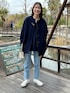 maのノーカラージャケット「メリンプショートコート」を使ったコーディネート