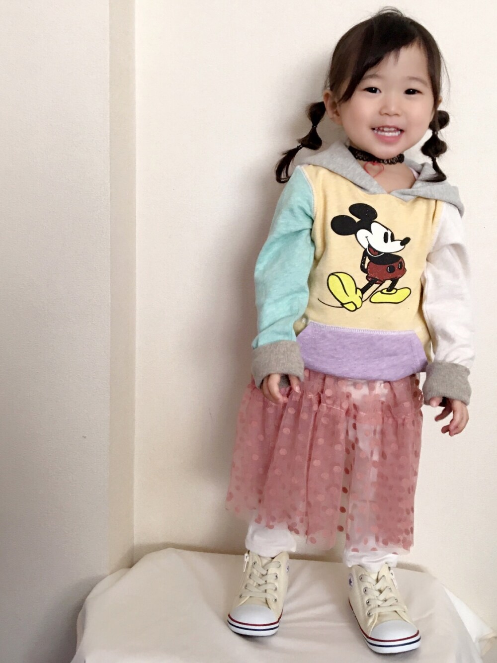 カラフルコーデ🌸 スウェット地とチュールの組み合わせが大好き💓