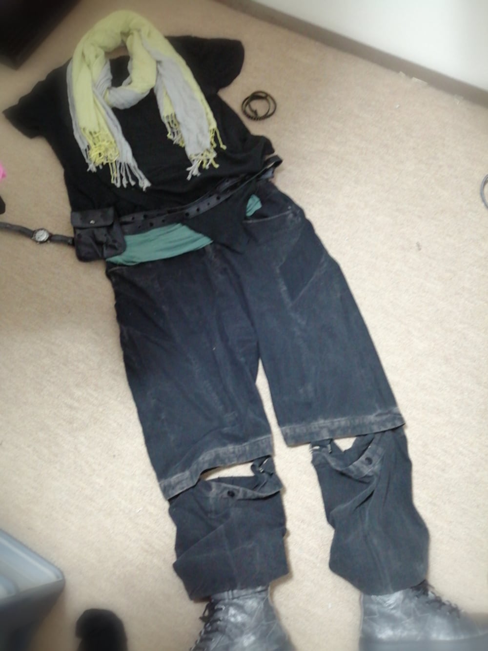カーキのムラ染め膝出し?(笑)サルエルパンツ 最近は膝冷やすと痛むから、あまり履く機会なかった😓