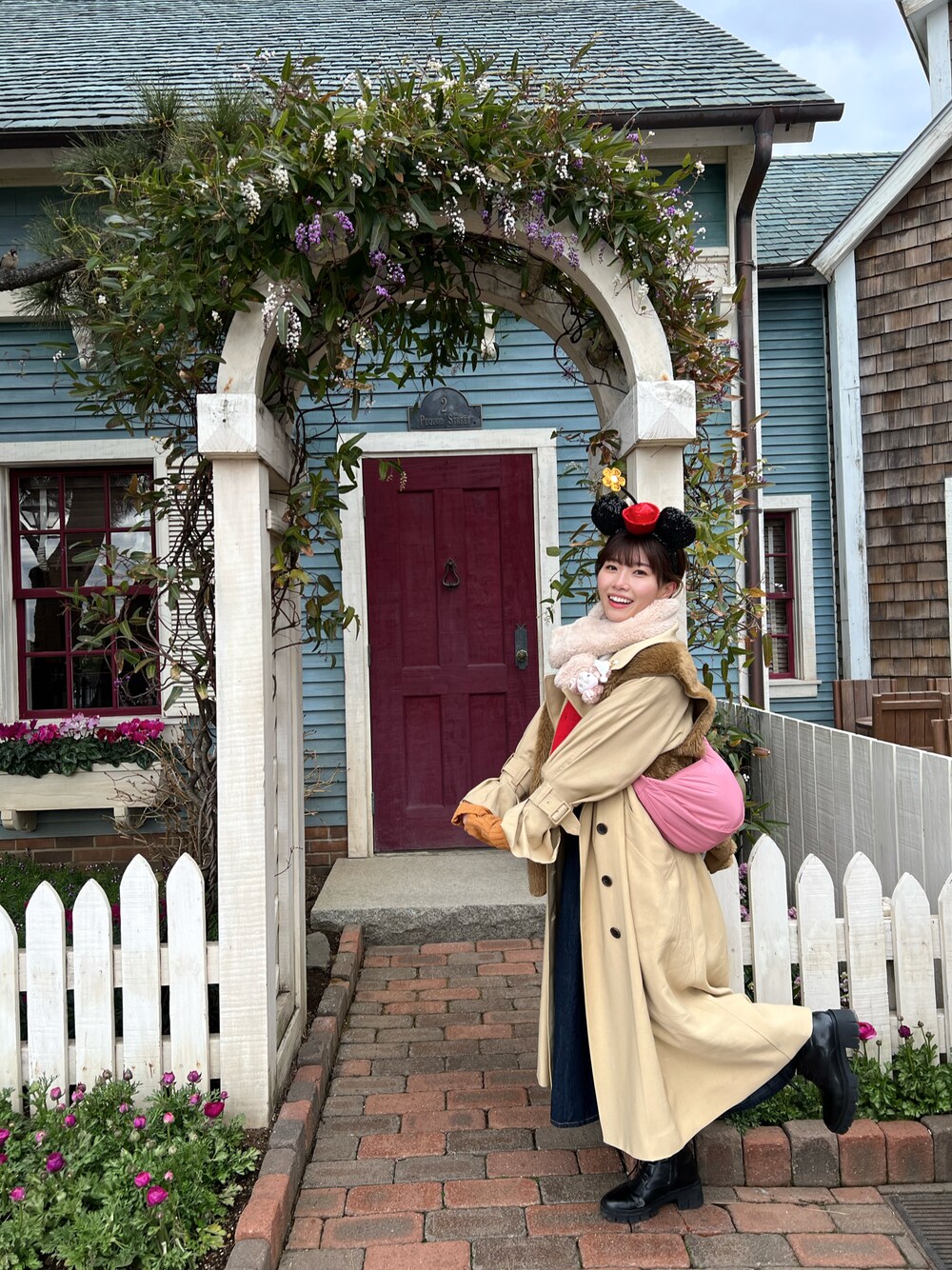トレンチコートを冬風に着たくてファーベストと合わせてみました♡冬のディズニーでも温かい着ることができました♡♡
