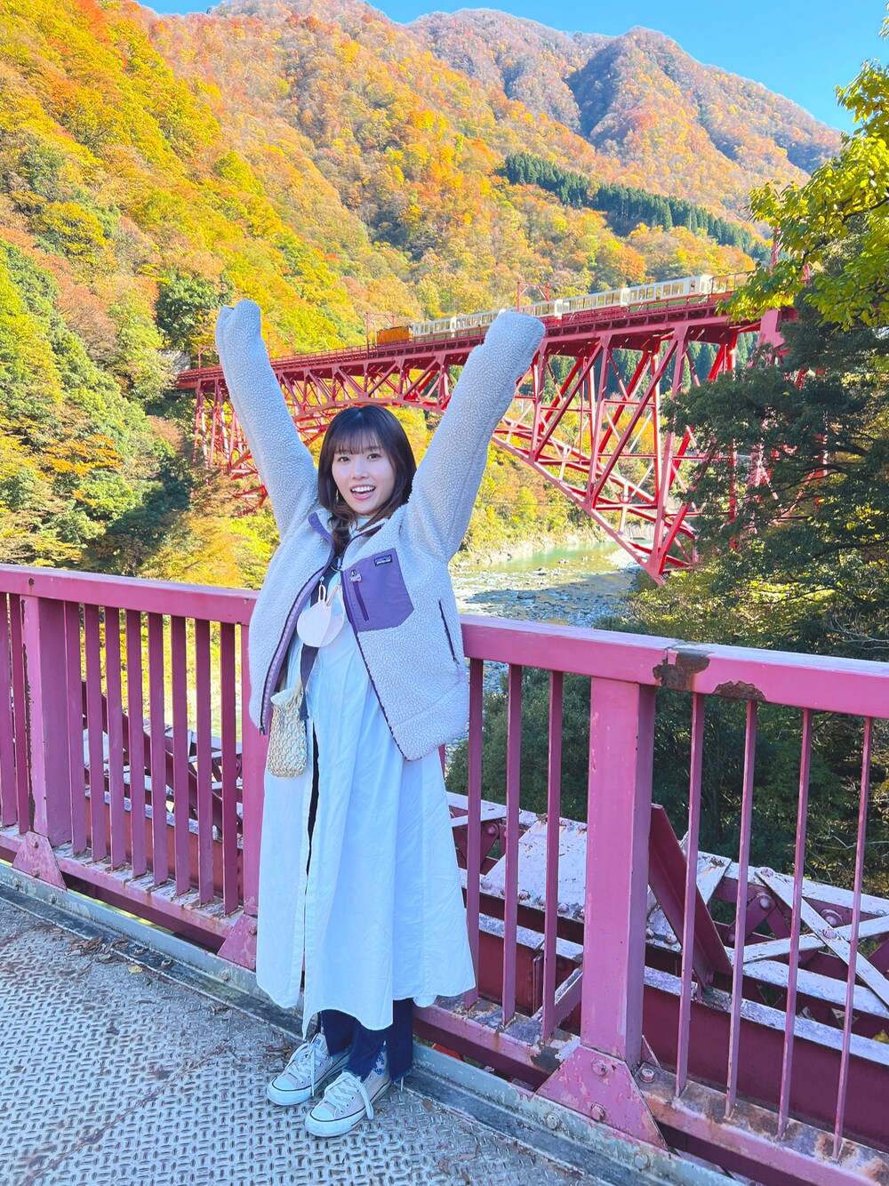 Patagoniaのフリースの色がかわいい! 春服デビュー宣言のタグをつけていますが写真は秋です🍁春にもかわいいコーデです!