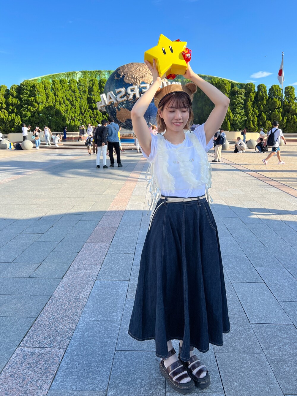 お気に入りコスメタグ🏷つけました♡ 特にチークがお気に入りです!!ふわっと自然な血色感になります! ユニバコーデです💫💫 帽子はティムのベレー帽で、ポップコーンバケットはスター🌟🥰 履き慣れたマーチン♡