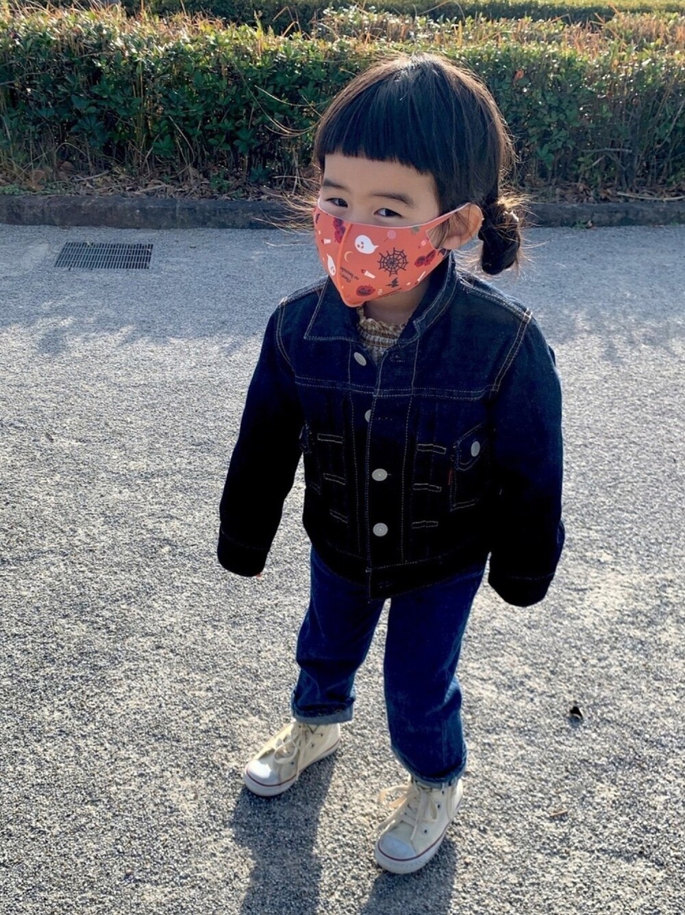 デニムオンデニムな休日 なぜかマスクは季節外れのハロウィン🎃がいいって😂