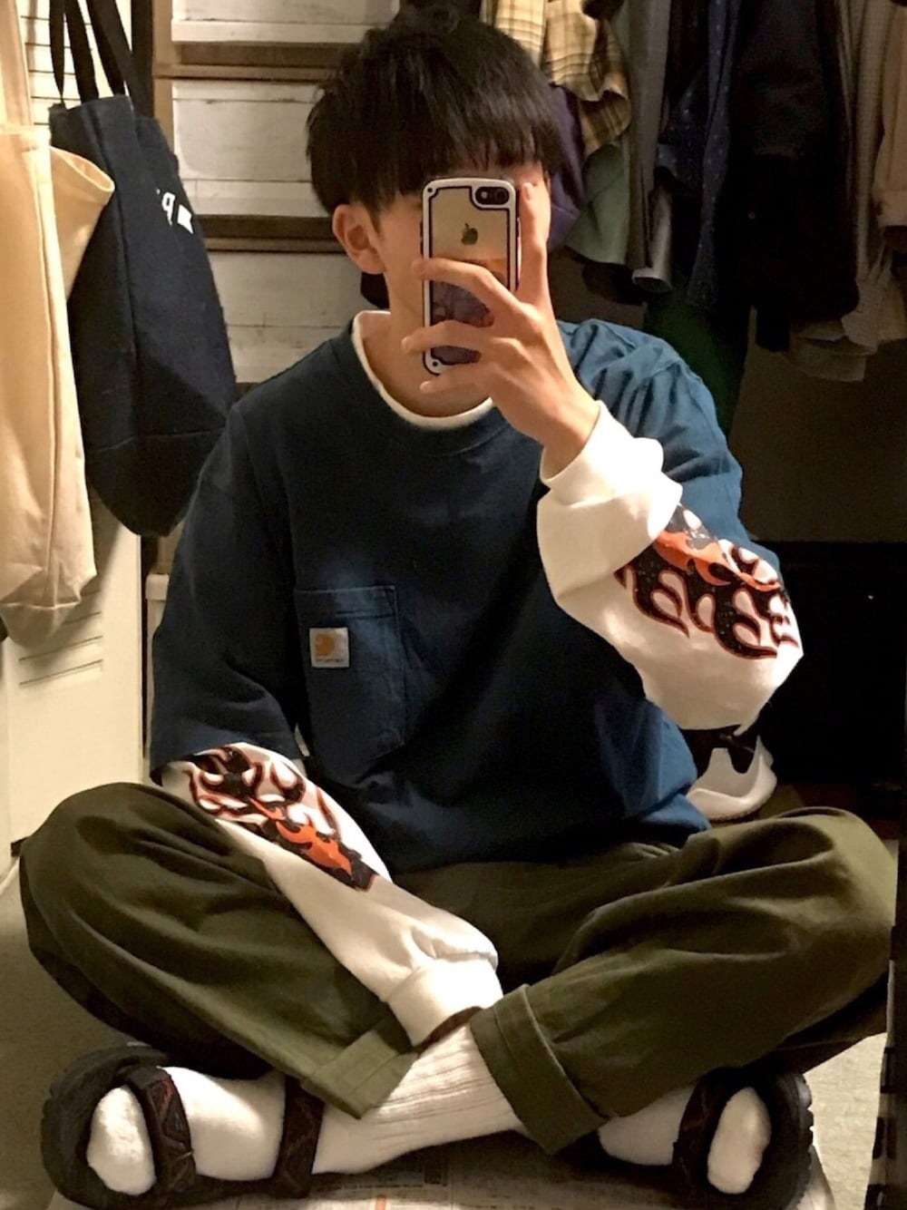 うみゆのTシャツ/カットソー「carhartt/カーハート Workwear ビッグシルエット ポケット半袖 ロゴ Tシャツ ワッペン トップス」を使ったコーディネート
