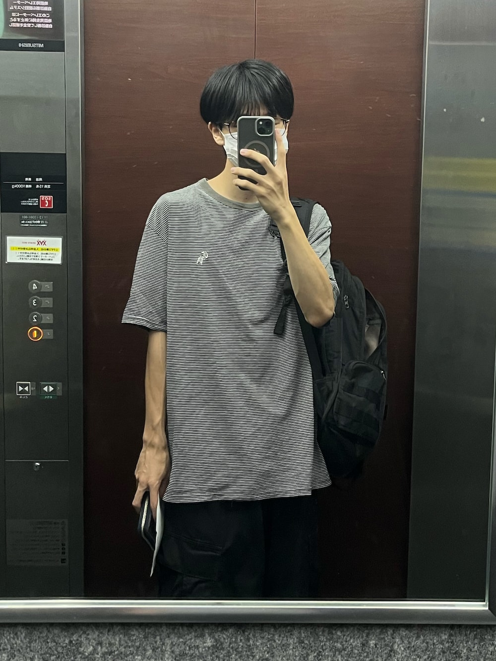 グレー系のTシャツ/カットソー、ブラック系のカーゴパンツを着用したメンズの秋コーディネートの1枚目の写真