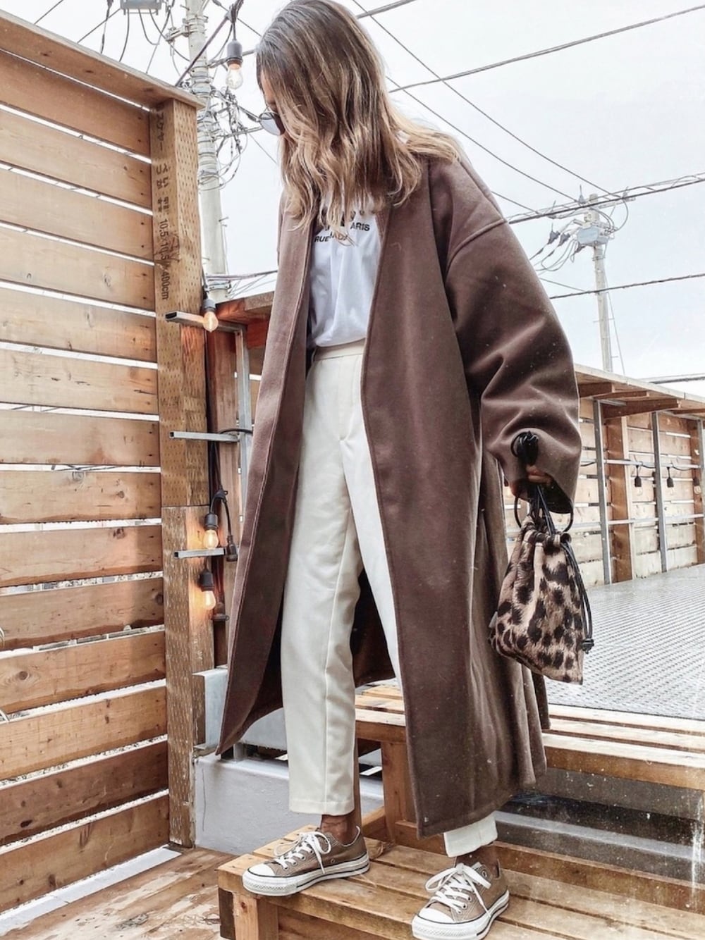 ブラウン×ホワイトのワントーンコーデ❤︎ コンバースでカジュアル感プラス☺︎