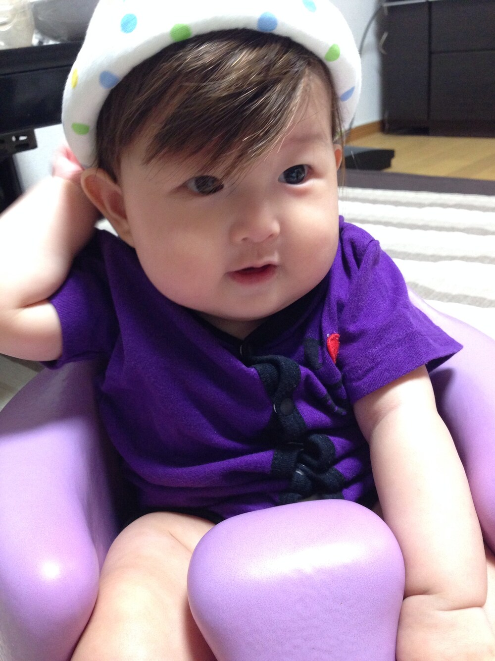 ママの前髪ウィッグ付けたら男の子みたいになっちゃいました( *´艸`)❤️笑