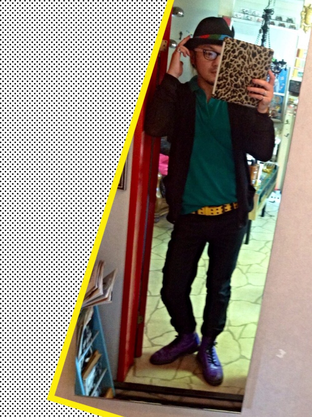 ポロシャツ ★フレッドペリー ブーツ ★ドクターマーチン(パープル)8HALL メッシュカーディガン ★ジョイリッチ ハット ★フェノメノン