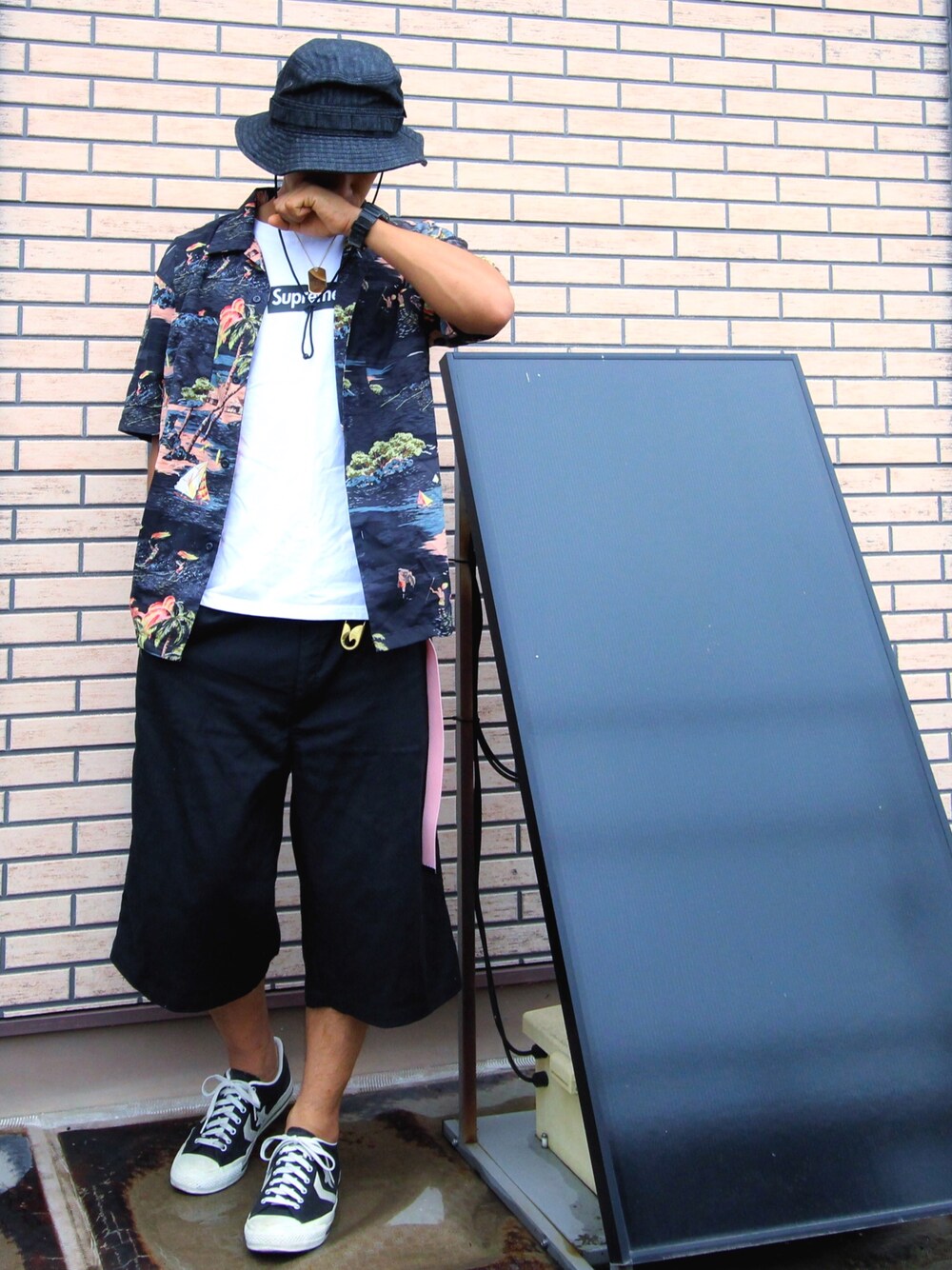 シャツコーデに✨ 恐縮ながら夏休みをいただきました〜😭2ヶ月くらい全く休みがなかったのですが自分のミジンコのような我慢弱さに打ち勝ちやっと休みをもらえました💮頑張ったね俺✋ アロハシャツはなんでも合わせやすいので夏は安定なんじゃないかと思います!ボタン閉めてよし、解放してよしとバリエーションが豊富なところが特徴敵ですね✨