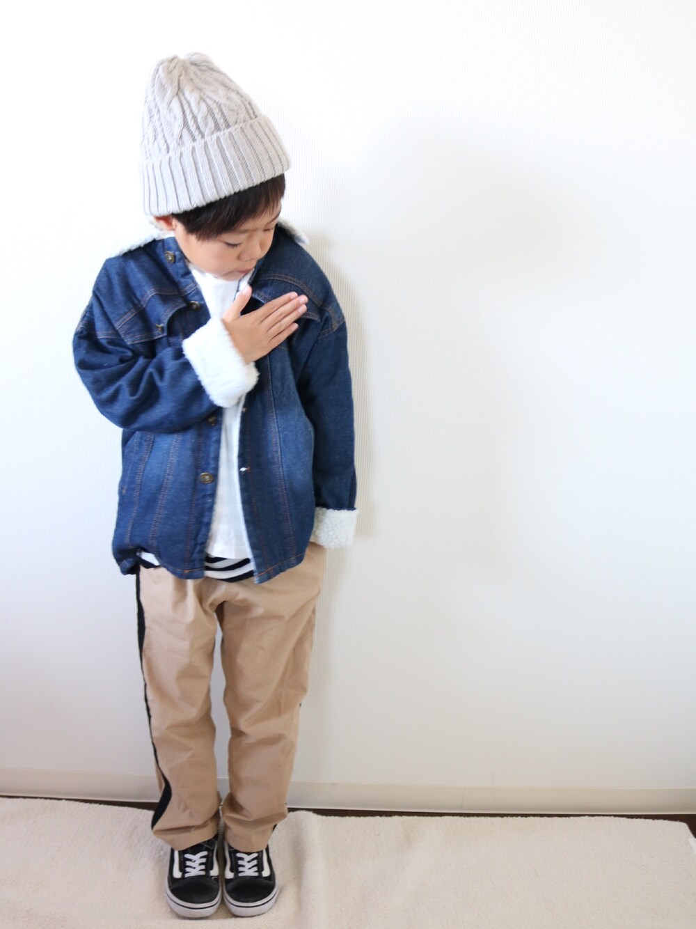 Lilick0408のニットキャップ/ビーニー「ザ・ノース・フェイス キッズビーニー / キッズケーブルビーニー」を使ったコーディネート