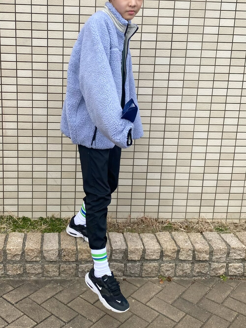 久々ANIコーデ♡ モコモコアウター😍とファミマソックス🧦 メンズのSサイズで萌え袖