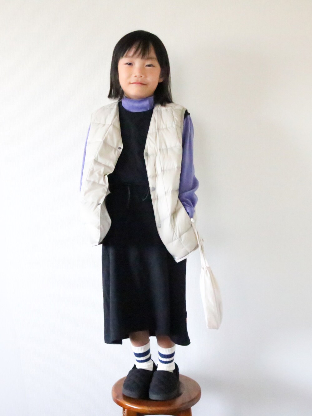 普段娘は差し色が好きです♡ 母と娘の好みを上手く交えながらコーデできたと自画自賛です𐤔𐤔
