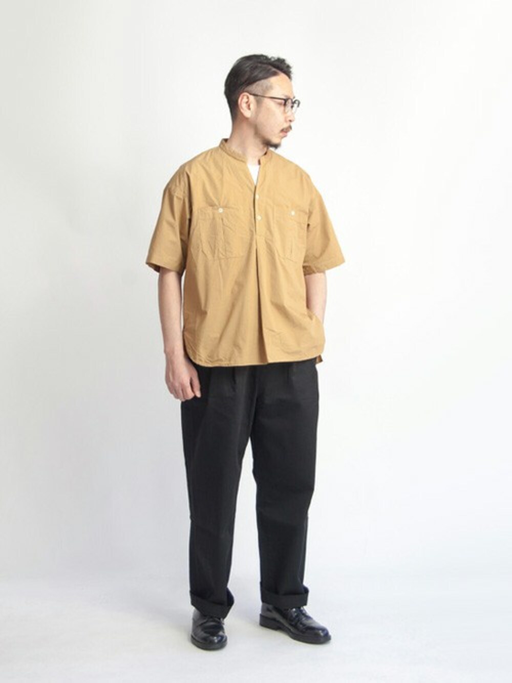 フランス軍M-52のようなワイドなタック入りチノパンツと半袖シャツ。 長すぎない着丈がワイドなパンツと相性良いです。 INSTAGRAM: http://instagram.com/mutamutabor/ FACEBOOK: https://facebook.com/marcarrows.jp/ ONLINE STORE: https://www.mutabor.jp/