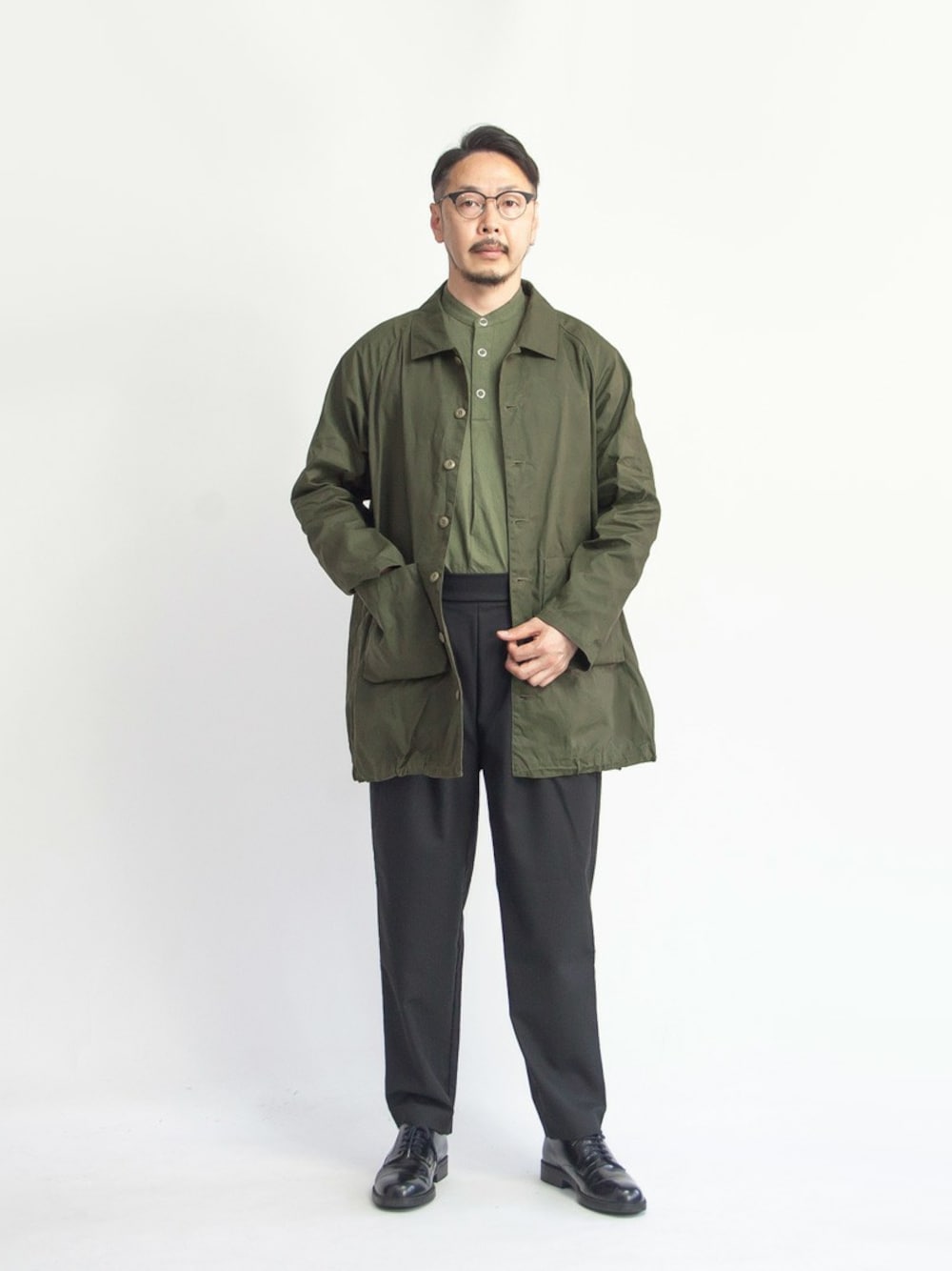MARC ARROWS 安岡のステンカラーコート「have a good day パラフィンワークコート」を使ったコーディネート