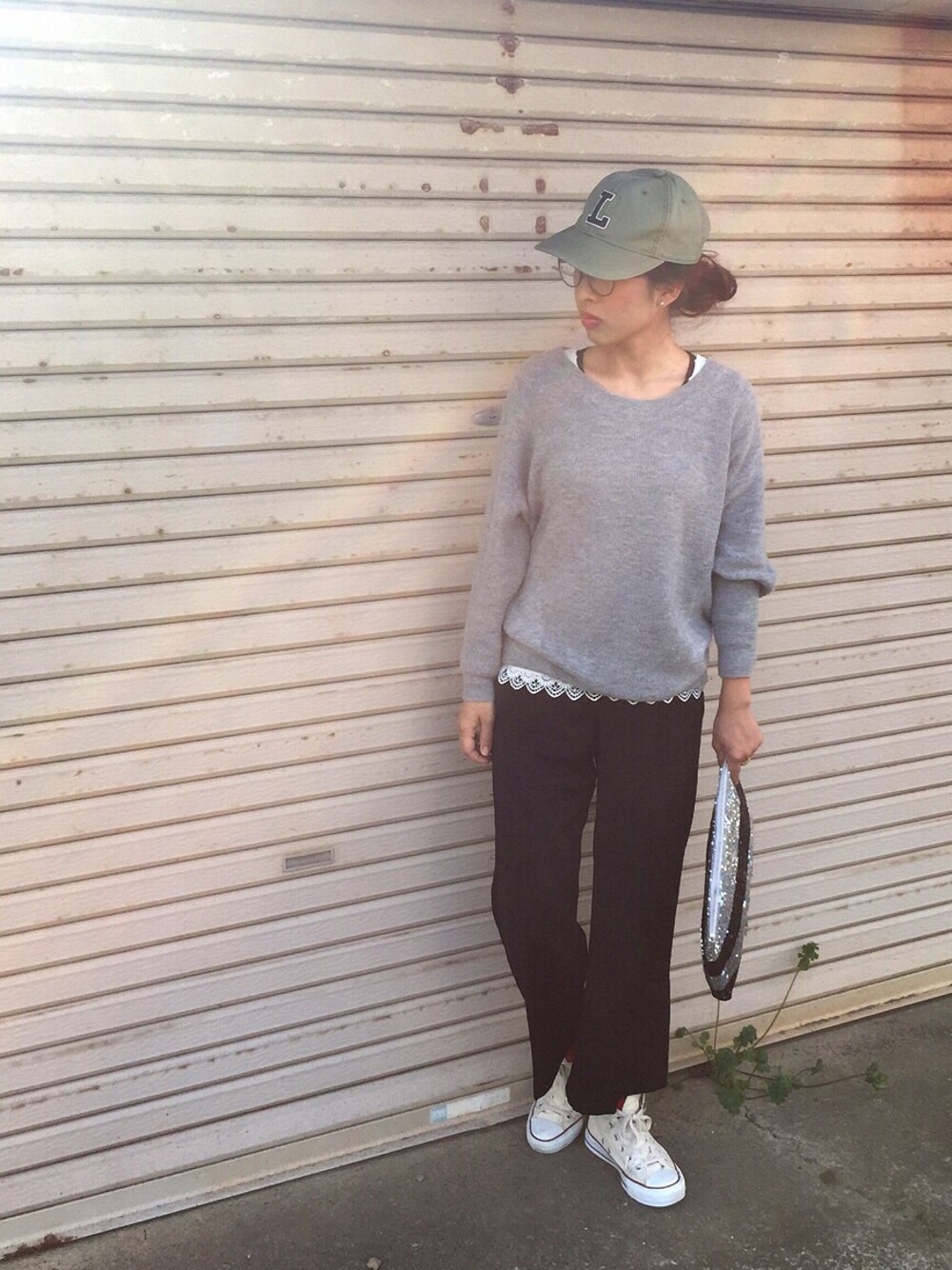 トップスのレースをチラ見せ |ω•)チラッ♡ ニット:JEANASIS トップス:JEANASIS キャップ:UNIQLO