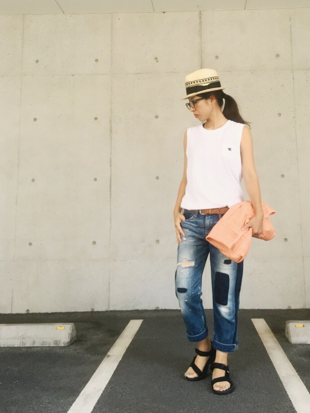 yurryのTシャツ/カットソー「(CHAMPION×ROSEBUD)CWSH337 NO SLEEVE POCKET T-SHIRT[チャンピオン][ポケットTシャツ]」を使ったコーディネート