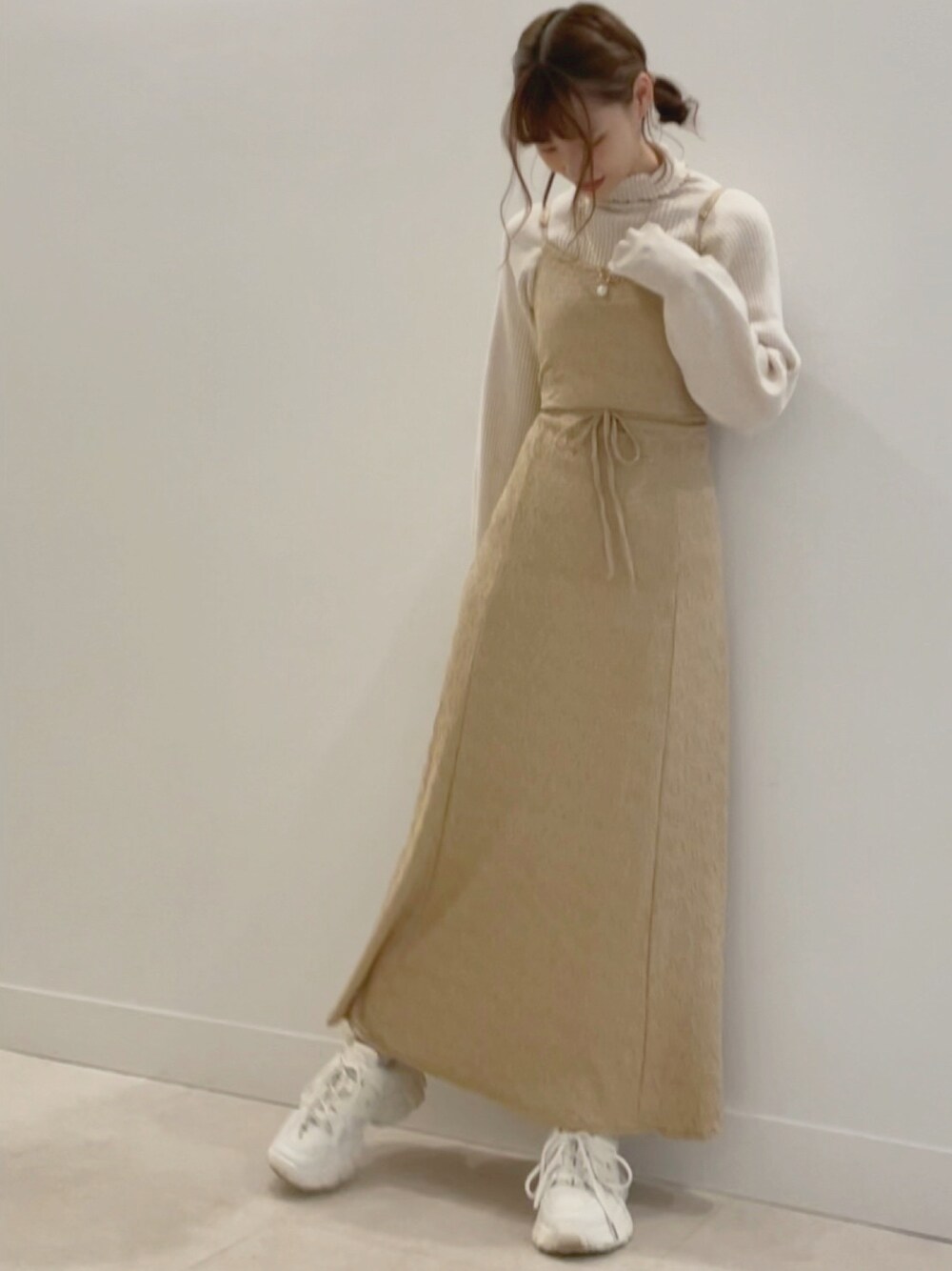 生地が可愛いワンピースにきらっとネックレス💫 スニーカーでカジュアルダウンしてみました🕊 Instagram▷▶︎@_march.19