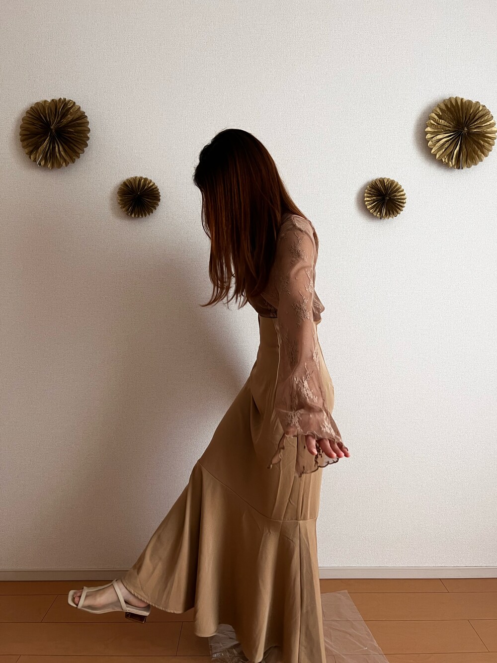 歩くたびに揺れるマーメイドスカートがやっぱり可愛い🤎🤎 AmbreNeigeのレーストップスは、着るとテンション上がる🫶✨