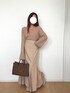 ベージュ✖️ベージュの淡色コーデ🐾 トップスは少しピンクベージュっぽくて肌に馴染むし、スカートはプリーツがたっぷりで通常のマーメイドより大きく揺れるから相性が良い🥹✨