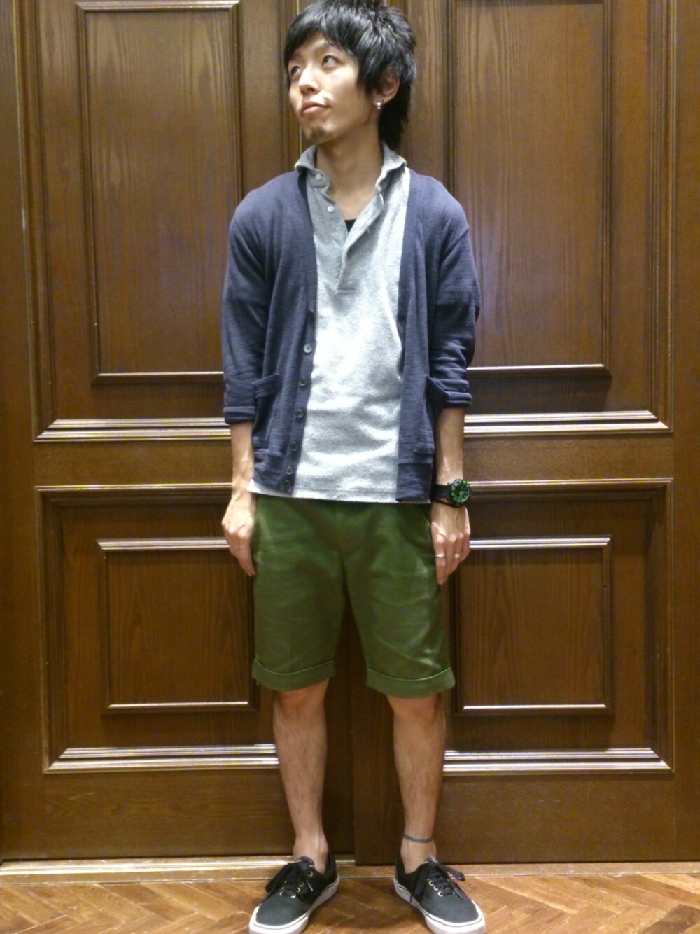 カーディガン/nano・universe ポロシャツ/GUYROVER ショーツ/Dickies シューズ/VANS 時計/LUMINOX