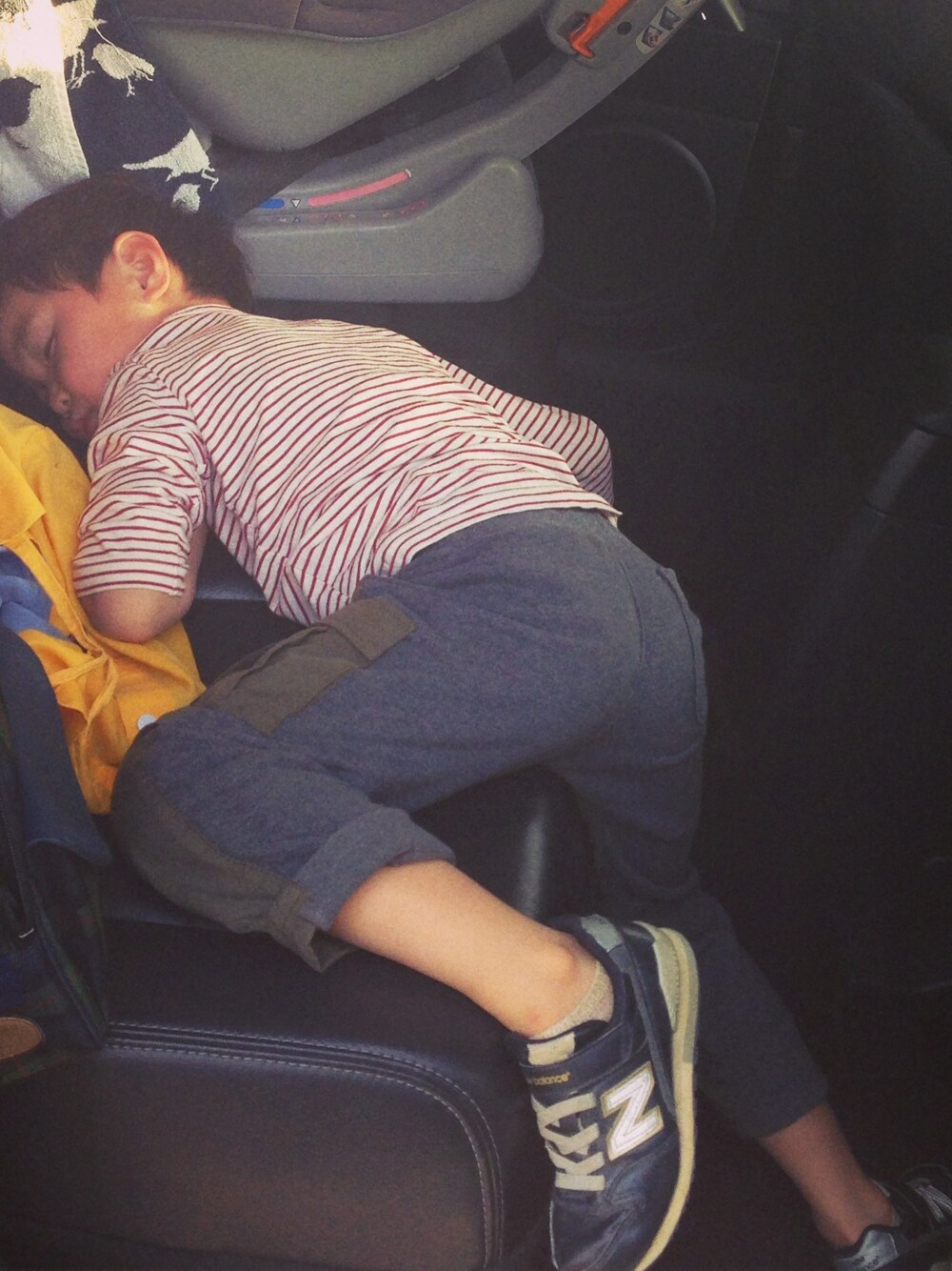 保育園帰りにすごい格好で寝てしまった長男。 上▷無印良品 下▷UNIQLO×UNDERCOVER