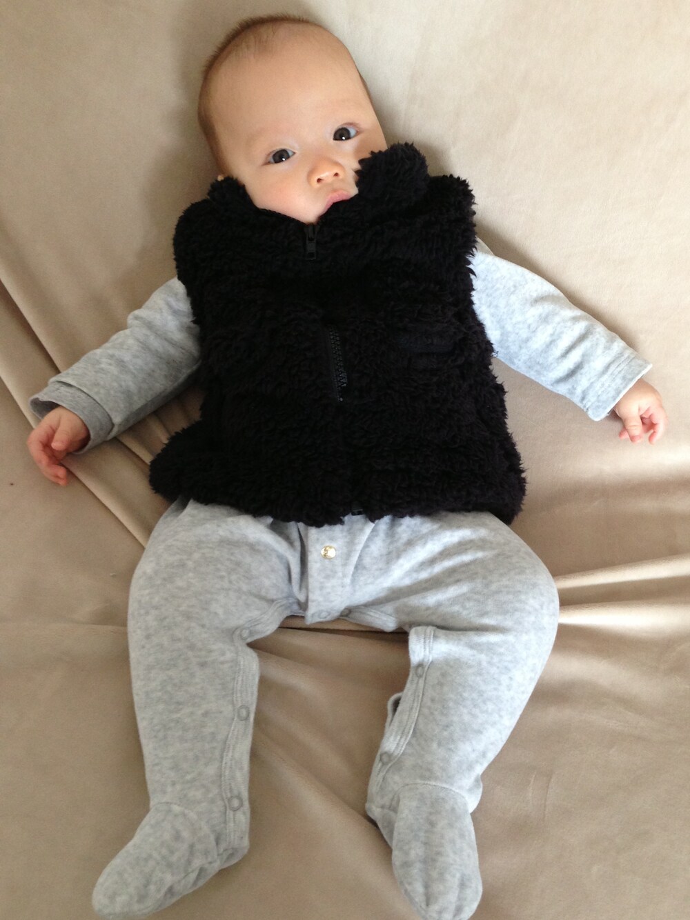 4月やのに寒いーーー もふもふベスト着てお出掛け♪ ロンパース▷プチバトー ベスト▷BOBOCHOSES