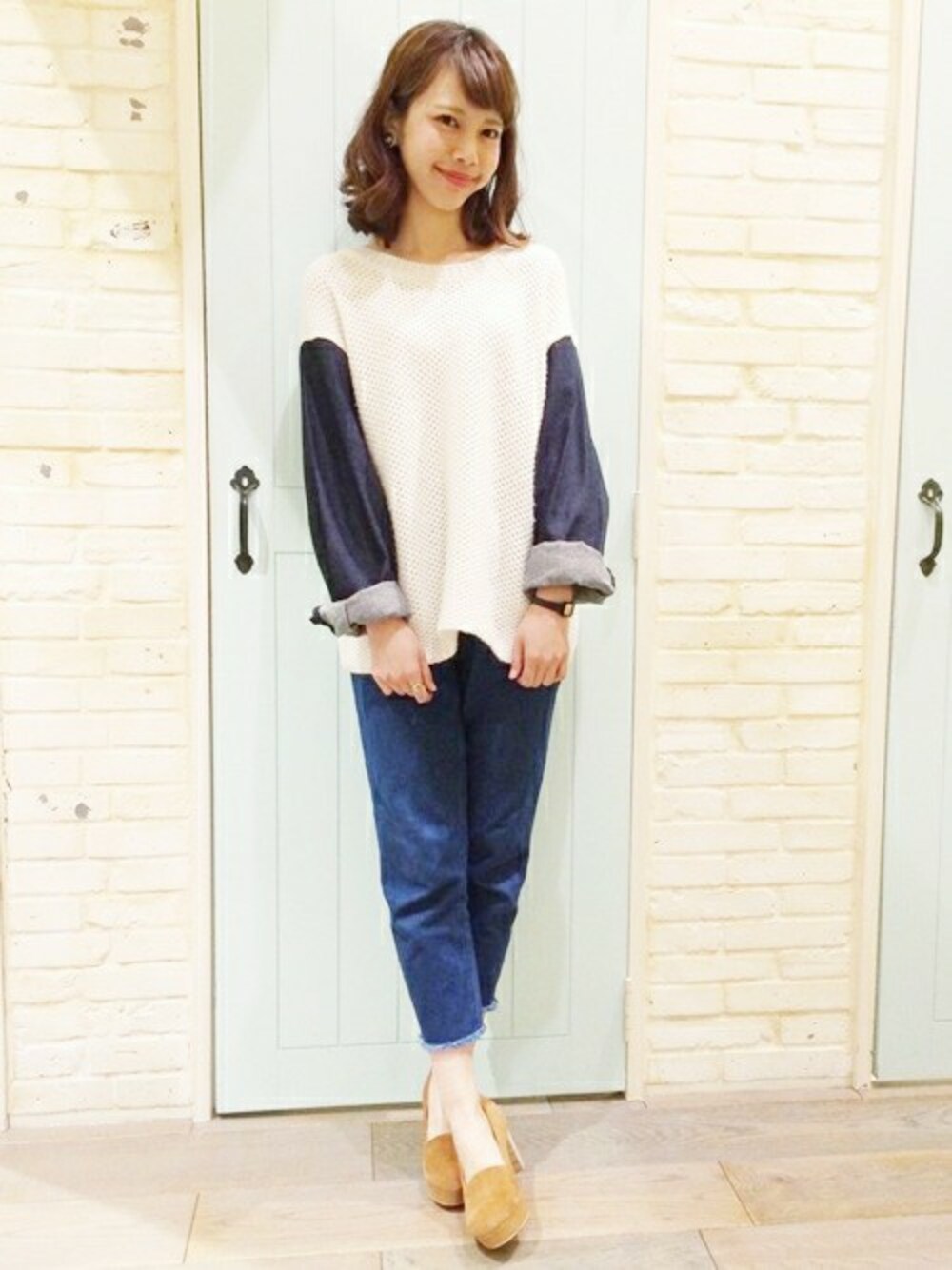 おすすめのデニム袖ニット☆パンツスタイルもかわいいです♪