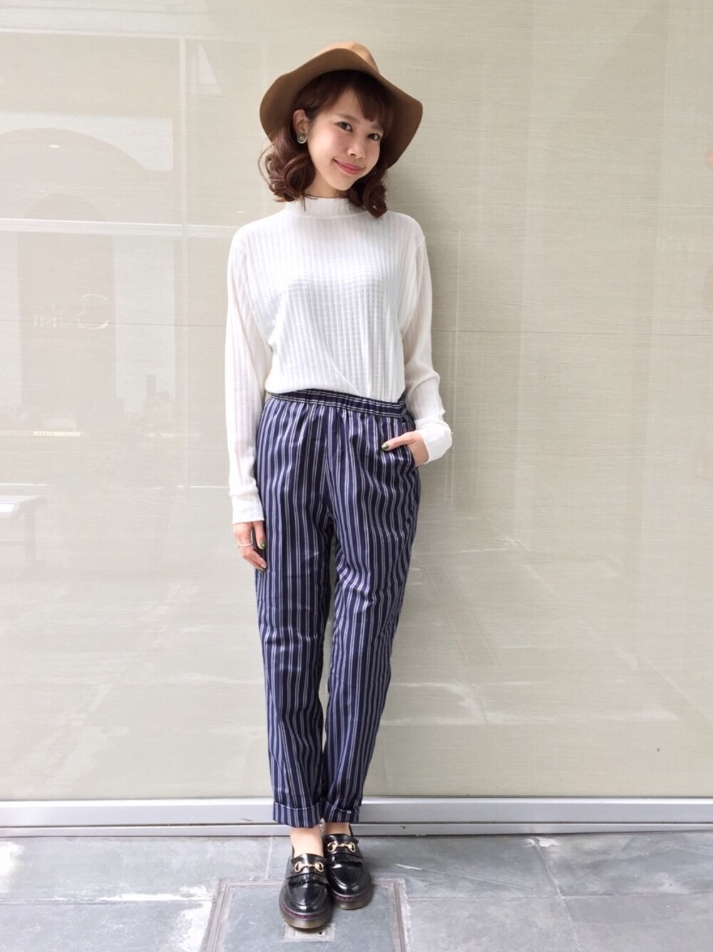 トレンドのツバ広ハットがKastaneにも登場! 被るだけでオシャレ度がグッとアップする、今季1つは持っていたいアイテム。 パンツスタイルでクールにスタイリング☆