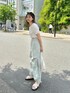 【tops】 着用カラー:ホワイト 着用サイズ:フリー Tシャツなのに、デザイン性があり1枚でおしゃれになるアイテム。 綿素材なので汗もしっかり吸収してくれて真夏も活躍します。 伸縮性があるので、着心地も最高。洗濯も洗濯機で可能です。 ぽこぽこしているので身体のラインも目立ちにくいです。 【bottom】着用カラー:ミント 着用サイズ:1 トレンドのカーゴパンツ! リボン付きバージョンが登場しました。 腰回りにゆとりがありしっかり体型カバーができます。 程よく肌見せできるので、カッコよすぎず女っぽさが出ます。 わたしの身長でフリーサイズがぴったり。 トップスはコンパクトで女性らしいアイテムを合わせあり 肌見せする着方がおすすめです。 【shoes】着用カラー:アイボリー 着用サイズ: L(普段 24.5cm) ふわふわな履き心地で疲れにくいサンダルです。 去年リアルバイ済み!週4くらいで履いてました。 柔らかいので靴ズレも全くしませんでした! ぺたんこですがボリューム感があるので スッキリめなパンツやスカートにも相性が良いです。 【bag】着用カラー:アイボリー 今年流行りのシルエットのバッグ。 すっきりしているのでふんわりしたワンピにも、パンツスタイルにも合わせやすいです。 横に広いデザインなのでペットボトルも入ります。
