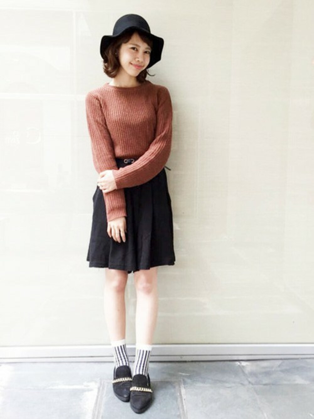 色合いで、ハロウィンを意識!かわいいブラウンのニットで今季のトレンドも詰まっていて◎