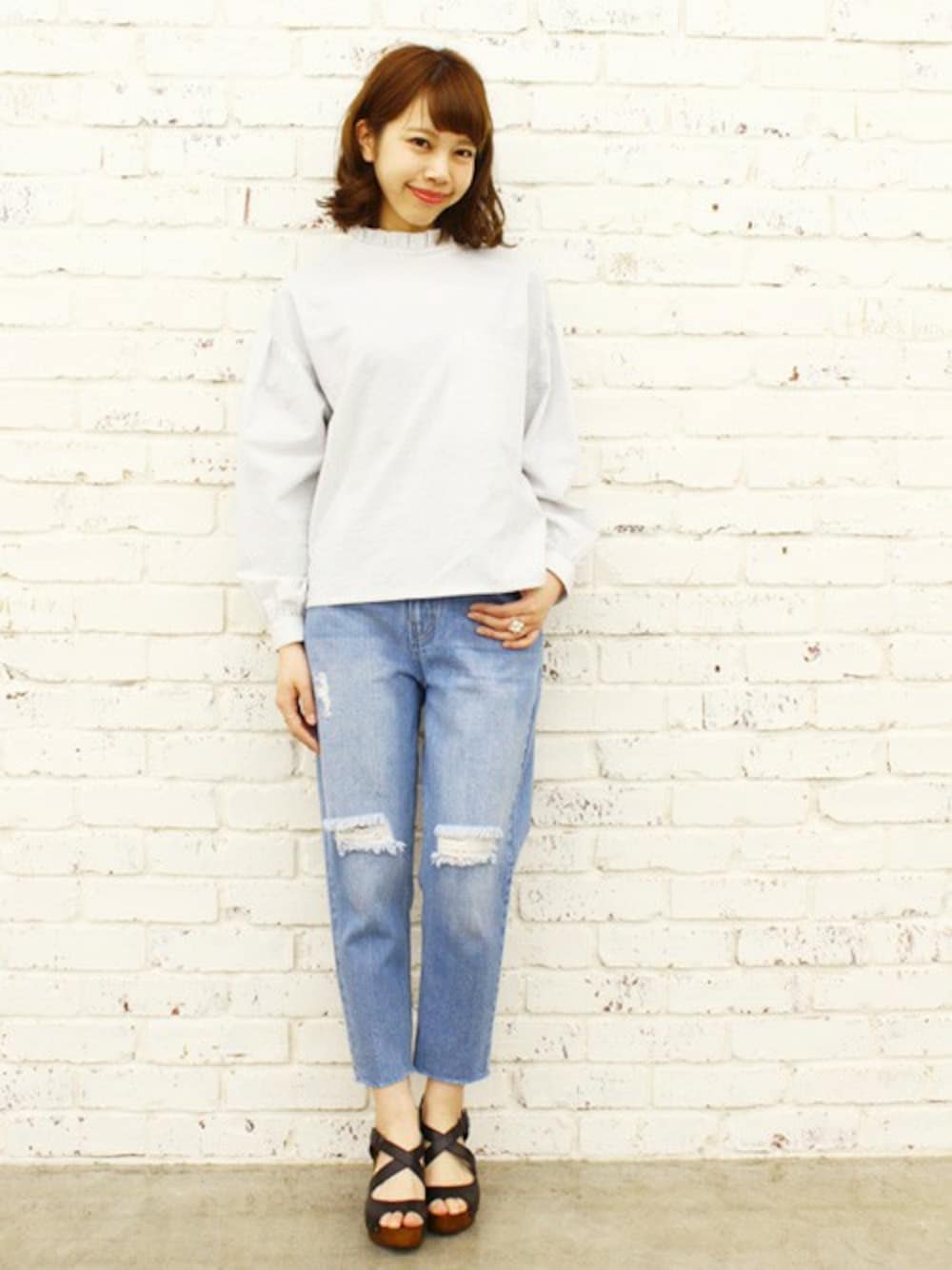 かとまり(Kastane)のデニムパンツ「【Kastane】ダメージ断ち切りデニムパンツ」を使ったコーディネート