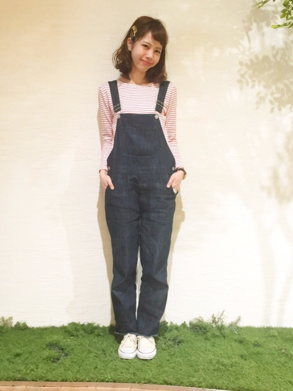 私服SNAP。 リアルに購入したデニムのオーバーオールはシルエットがキレイでお気に入りの1着。 この春はやっぱりデニムが着たい!