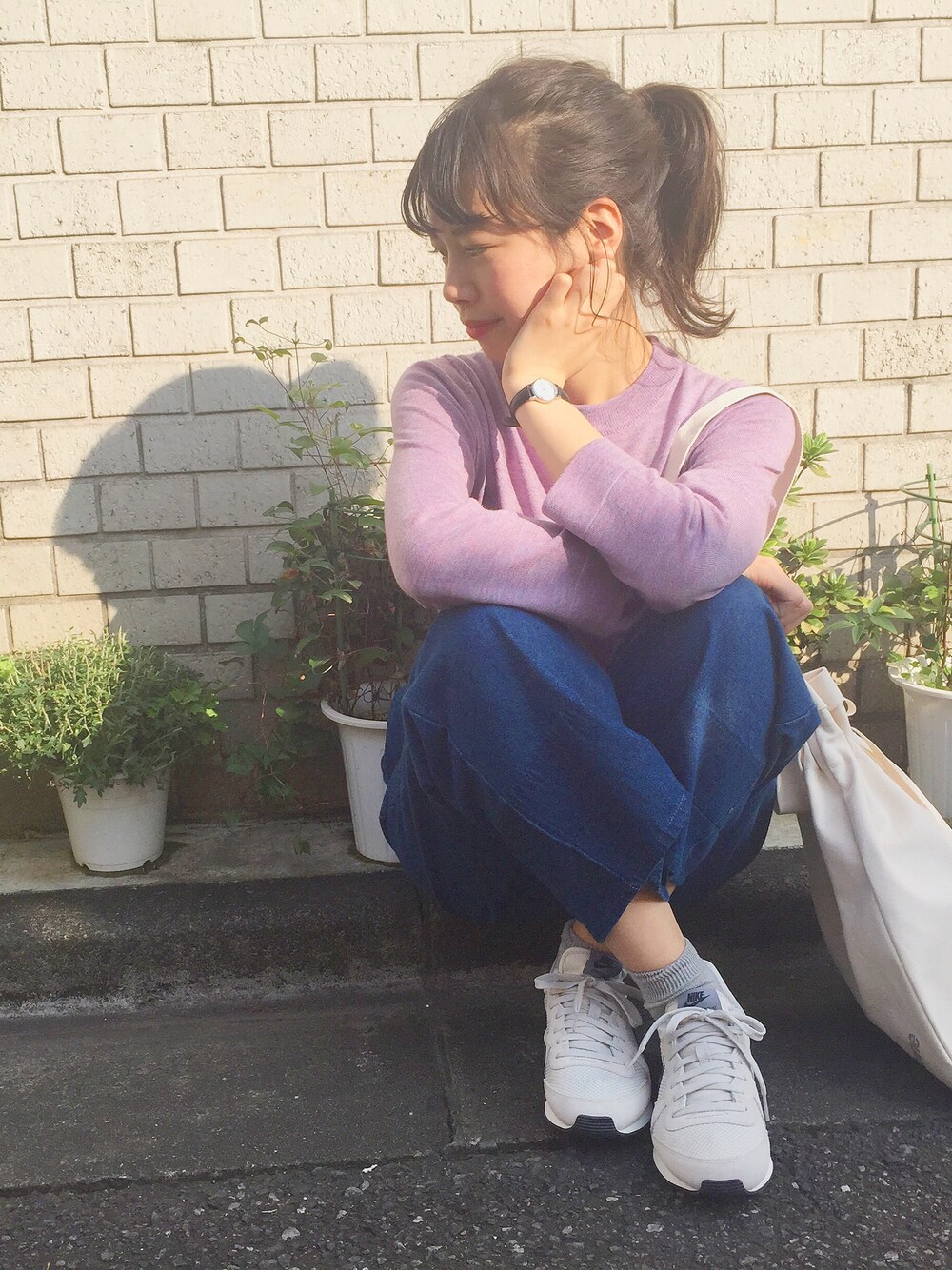 パープルのニットが主役のコーディネート♡ デニムで合わせが一番!!^^