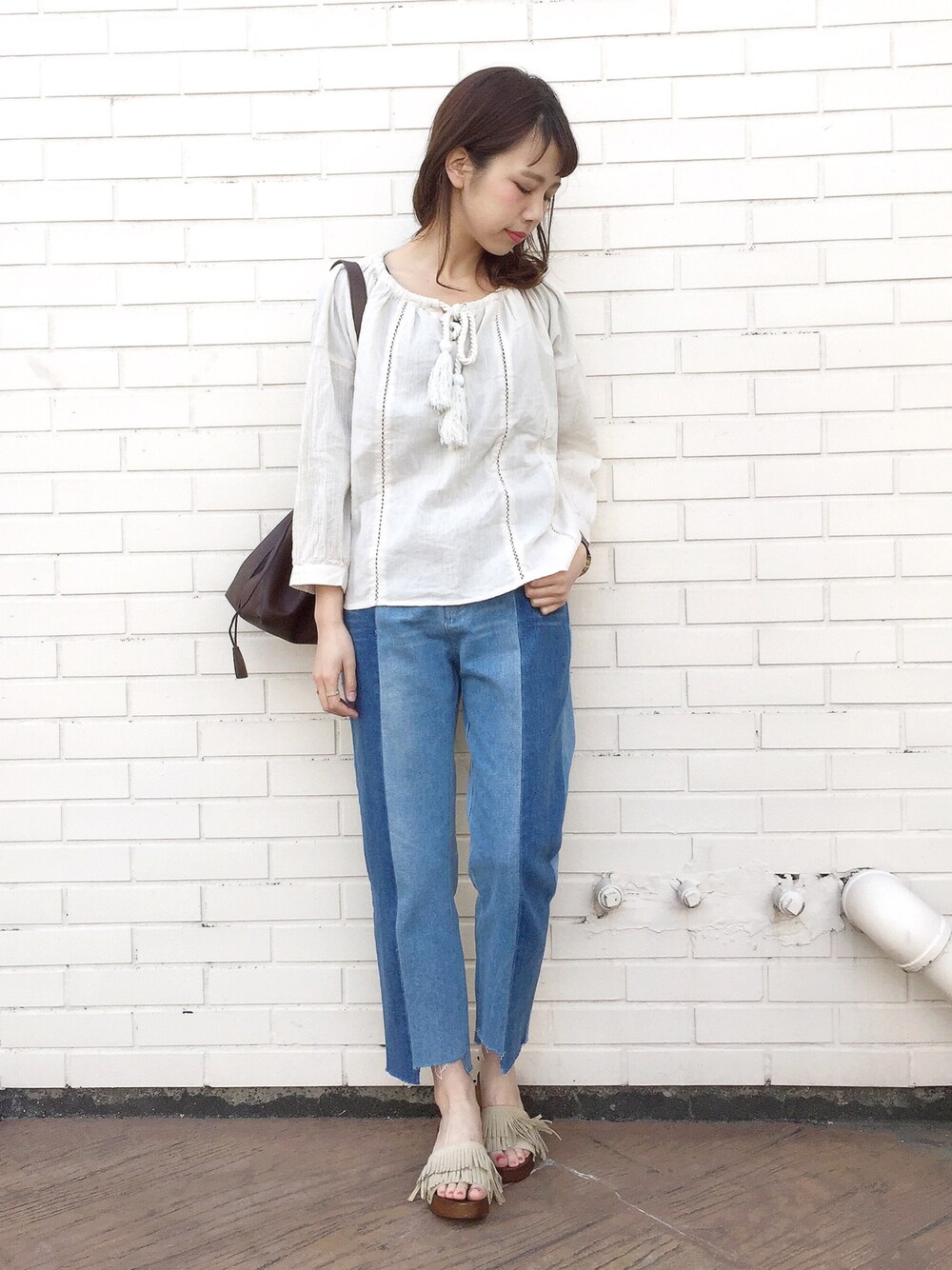 可愛らしく見えがちなはしごレースブラウスを ちょっぴり大人っぽくコーディネート。 さらっとしてるので、真夏手前まで着られます♡ instagram → @mari19k