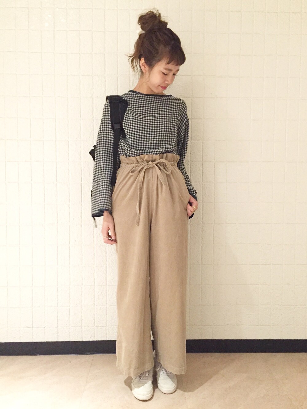 リバーシブルのトップスをギンガムチェックで。 スニーカーにバックパックでカジュアルに着こなしました☆ instagram ⇨ @mari19k