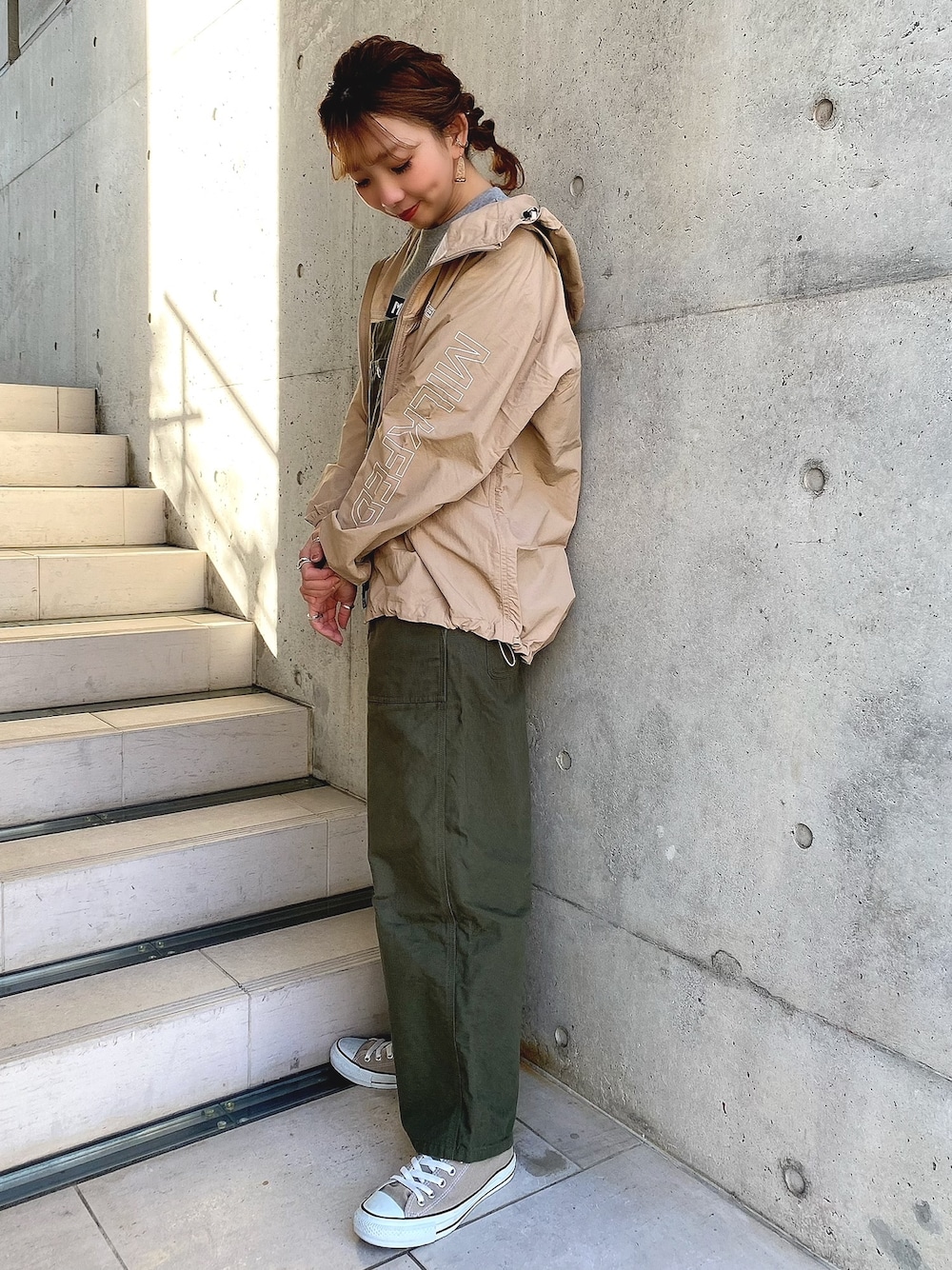 佐藤 麻理のナイロンジャケット「OUTLINE LOGO HOODED ZIP JACKET」を使ったコーディネート