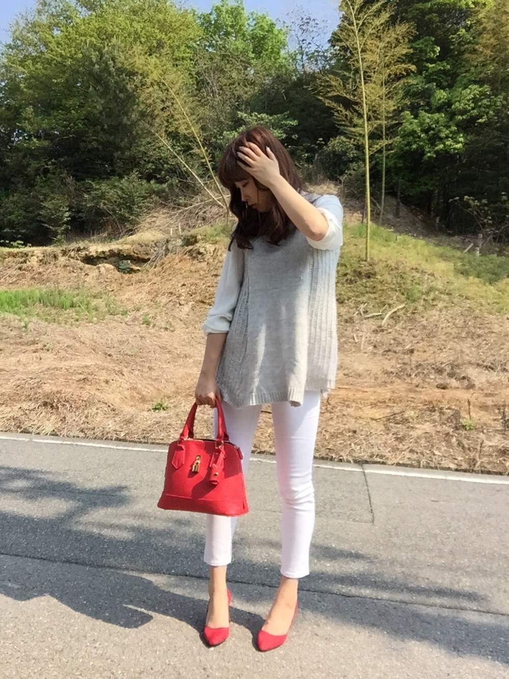 おひさしぶり〜〜)^o^(、、な投稿! 昔は黒尽くめだった私がだんだん黒がない コーディネートに変化しつつある(*^_^*) ホワイトとライトグレーでまとめて 小物は赤で揃えて締めてみたっ! パンツの微妙な丈感とか最高♡ 足首見せることで抜け感でて すっきり見えるよね! だからいつも足首や手首、デルコアとか 全部が隠れて重くならないよーに意識して ロールアップしたりしてきてるよっ(*^_^*) しかしパンツ以外ものすっごくプチプラ♡ 安くて可愛いって最高\(^o^)/ 今年の夏はいろんな格好にチャレンジしていきたいなっ♡ は〜〜自己満投稿でした←