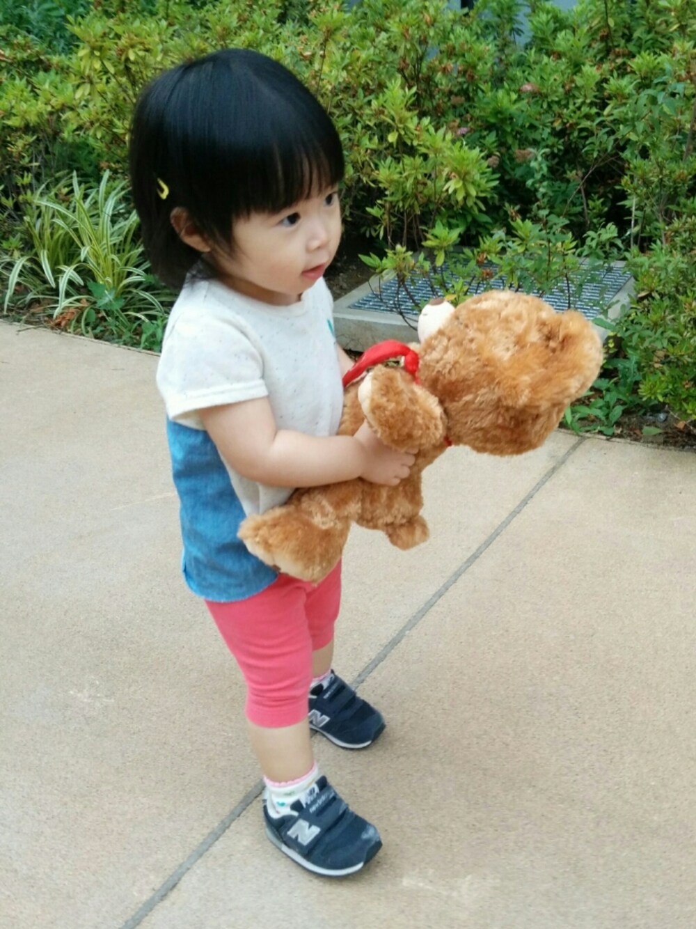futafutaのTシャツは後ろがデニム生地♡ ユニクロのレギンスは表記「red」だけど実際は濃いピンクっぽい色。 2代目ニューバランス996はネイビー♡♡ 2代目も中古😌