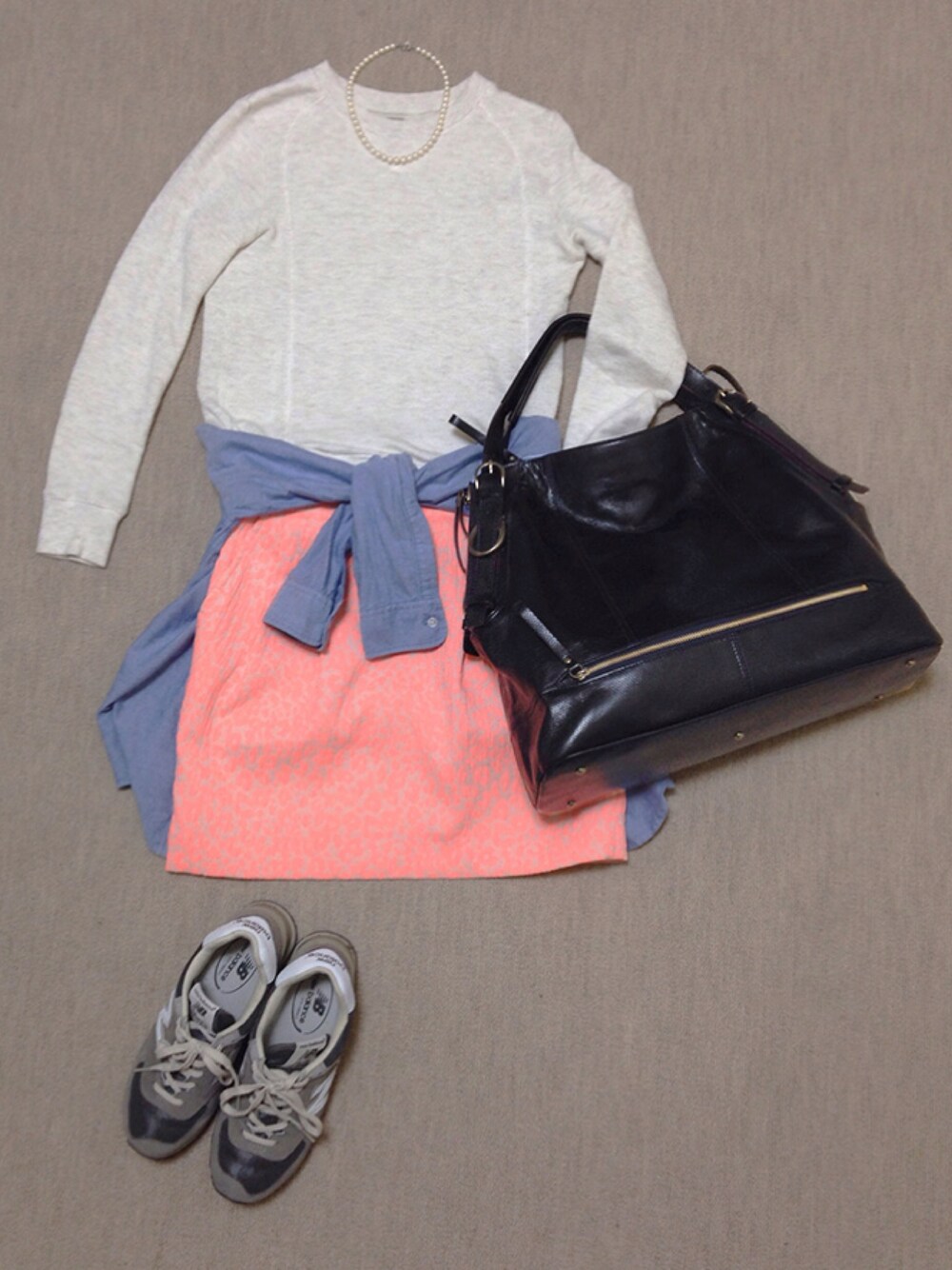 スウェット シェトワ バッグ 相方デザイン ネオンピンクのヒョウ柄スカートがポイント。 黒のショルダーバッグが引き締め役に☆ このバッグ超お気に入りᵞ◡̈*❤︎