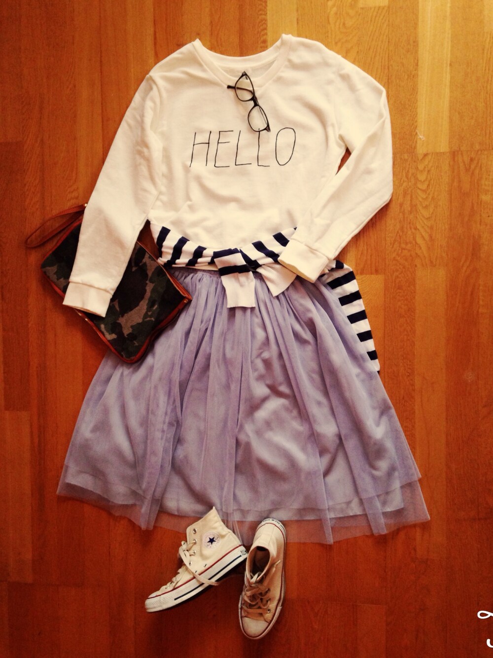 スカート:bulle de savon スウェット:VIS パステルカラー×チュール 甘すぎないよう ボーダーやら、迷彩やらスニーカーやらを 合わせてみました。 春だねぇ(*˘▿˘✽)