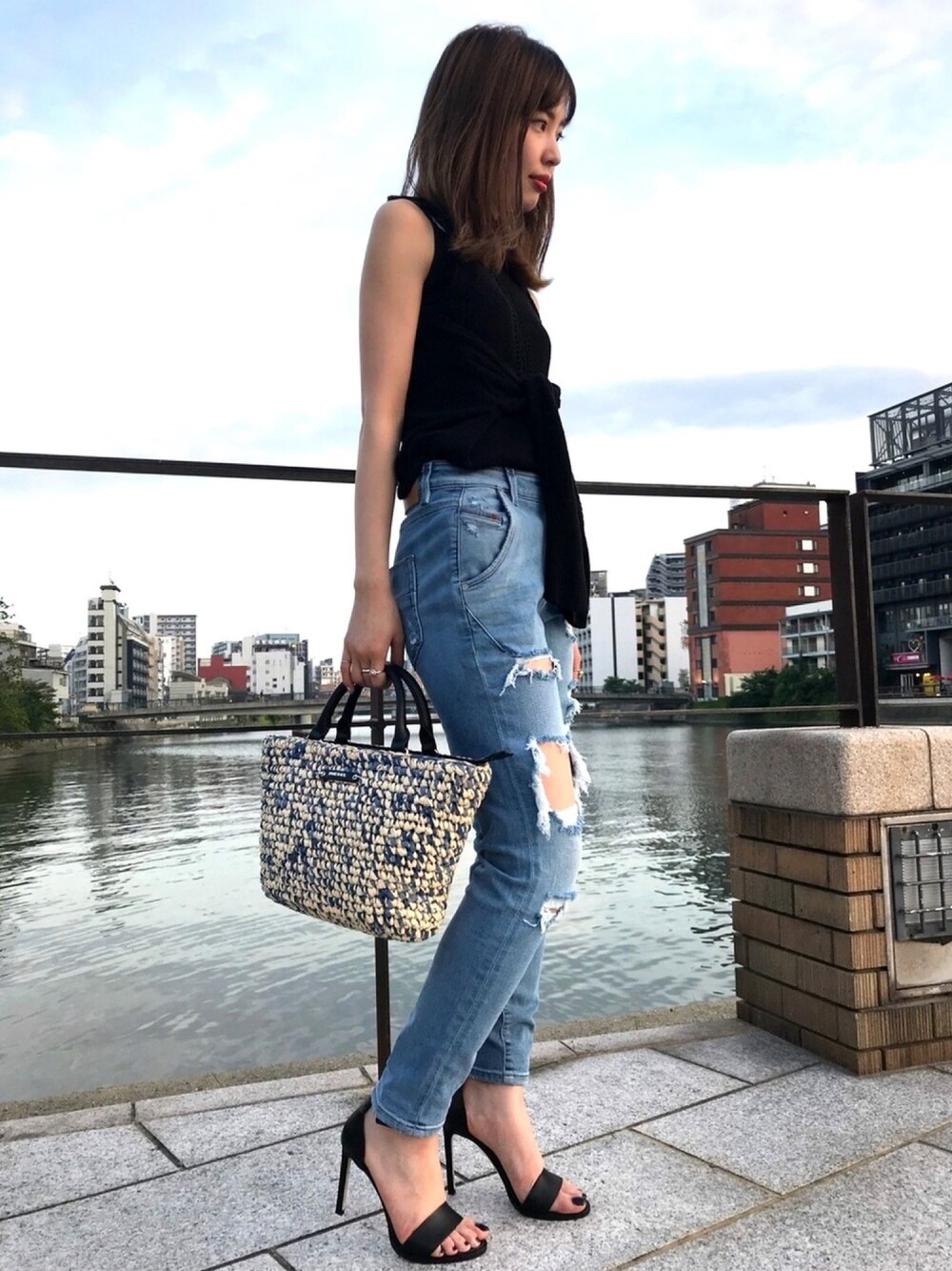 こんにちは! 今回から文章も書いていこうと思います! ショルダーオープンのトップスは袖を前で結んでタンクトップ風に着てみました このトップスはいろんな着方があるのでよかったらみなさんも試してみてください