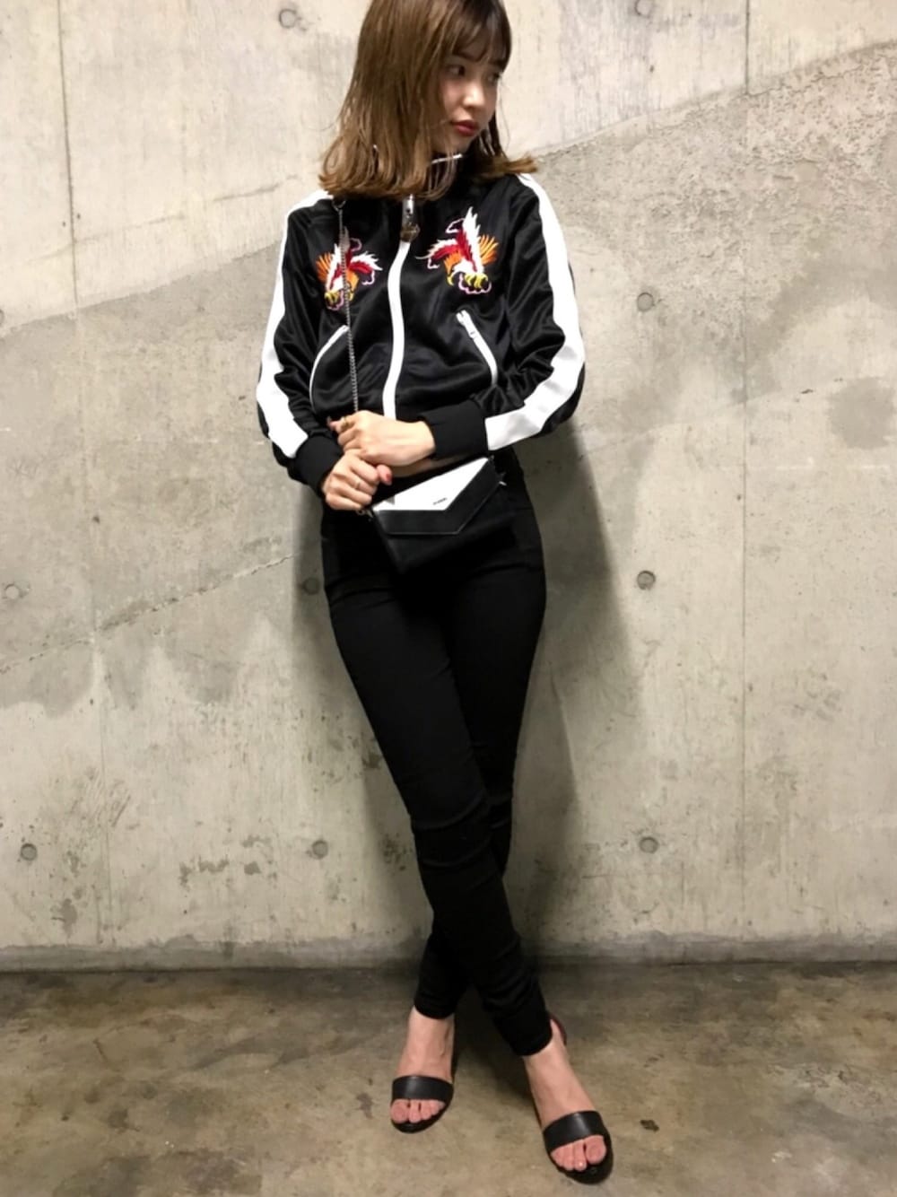 ジャージはバックの刺繍と丈感が可愛いところなのですがコーディネートによってはヤンキーぽくなってしまうことも、、 そこでウォレットバックとヒールを履いて女性らしさをプラスしました!
