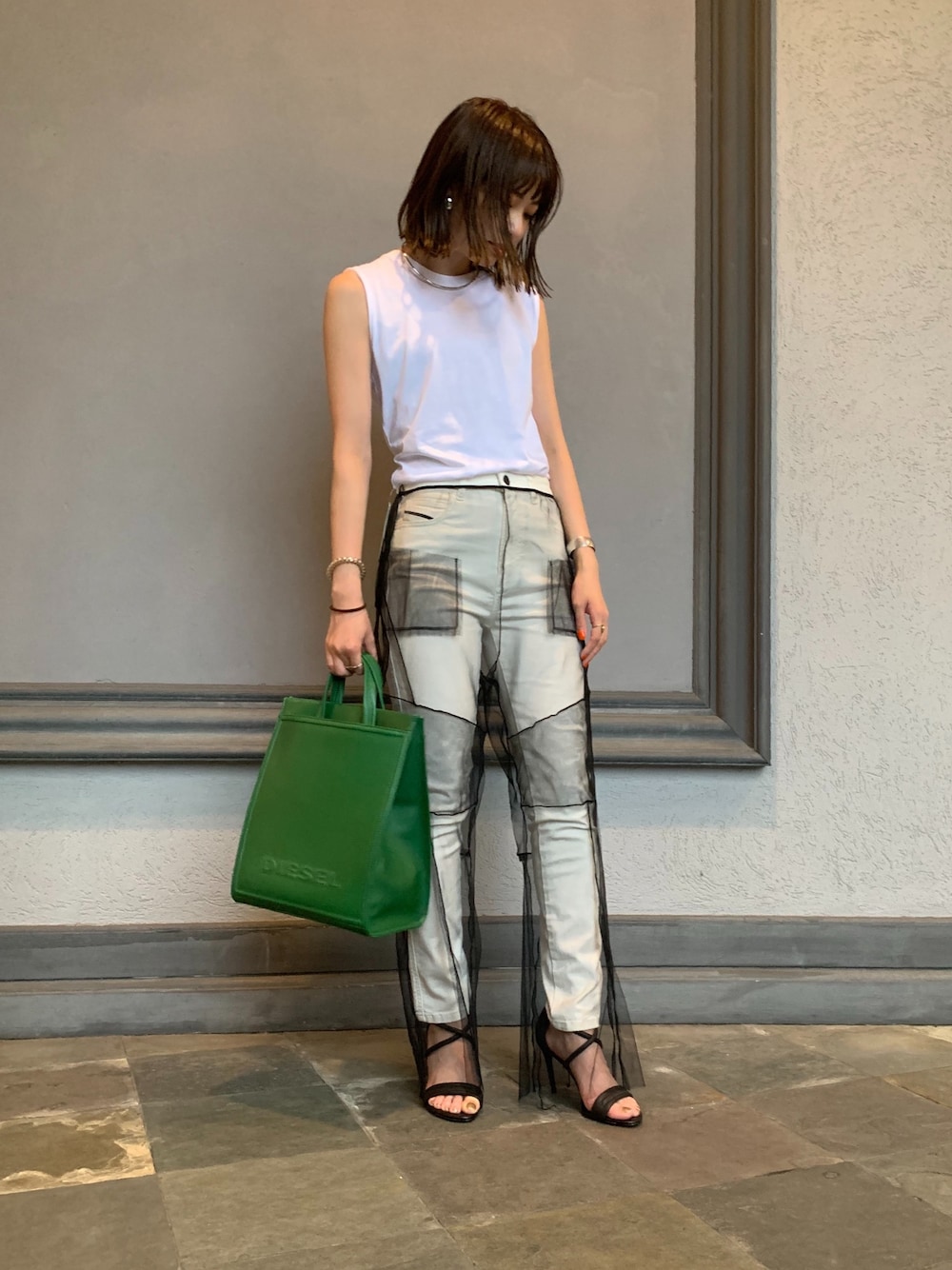 mari(DIESEL キャナルシティOPA)のTシャツ/カットソー「レディース バックロゴリッチコットンスリーブレストップス」を使ったコーディネート