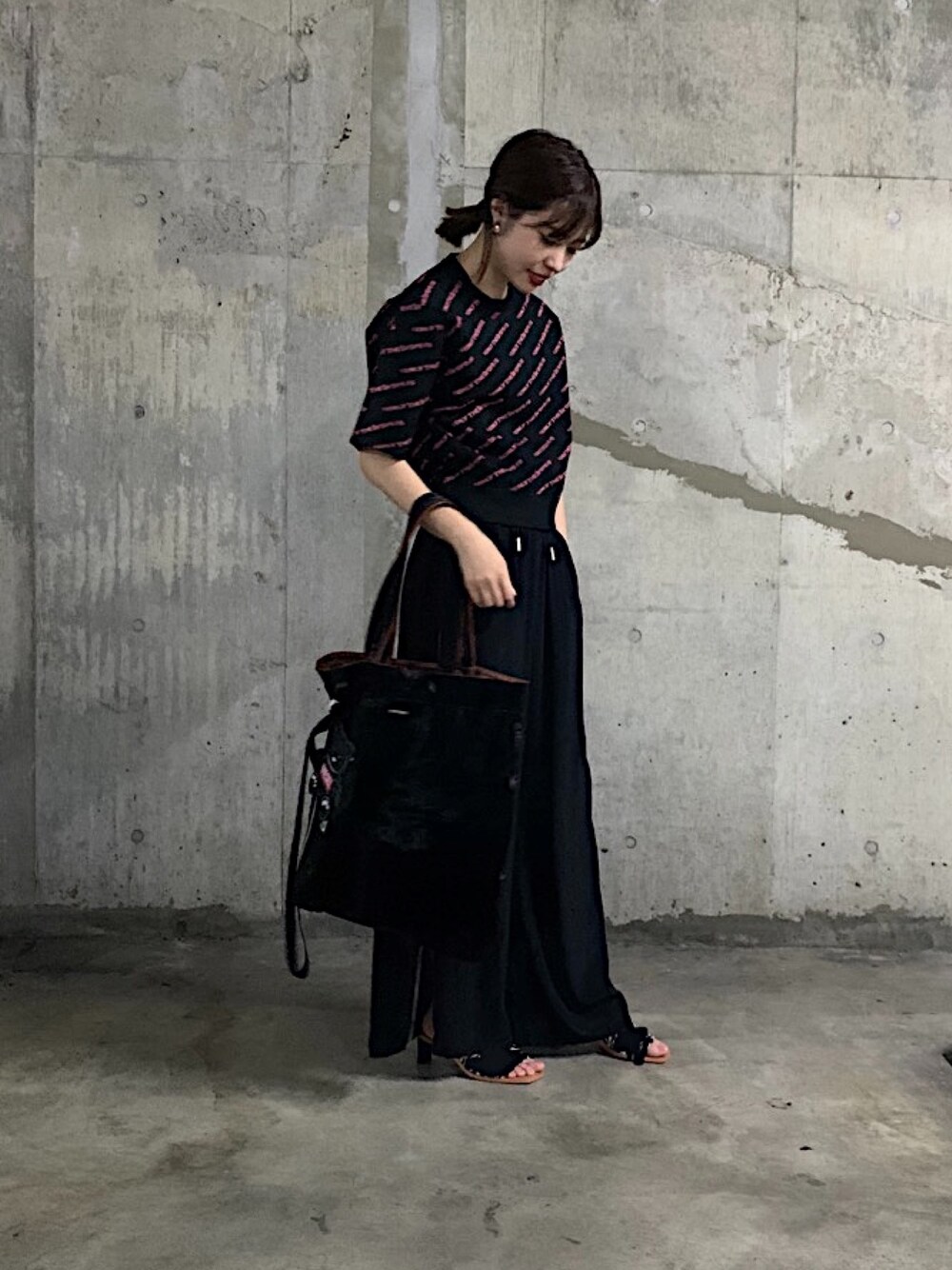 Instagram @marichael_jackson またまたブラックコーデ⚫️ サイドジップを開けたパンツで軽さを出しました! リバーシブルbagの生地がベルベット風ナイロンで珍しく、かわいいです😌