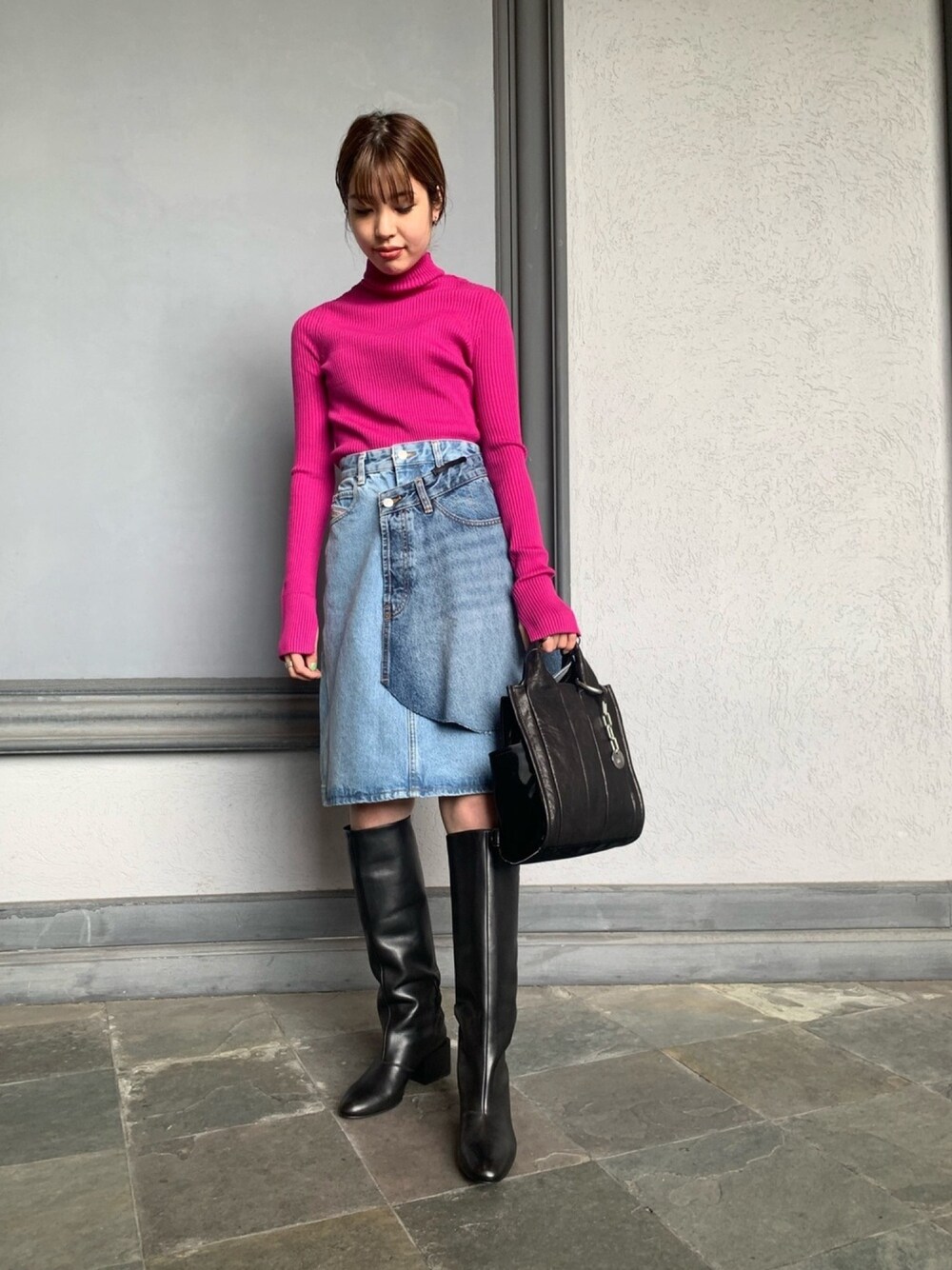 mari(DIESEL キャナルシティOPA)のスカート「レディース スカート 2トーンひざ丈デニムスカート」を使ったコーディネート