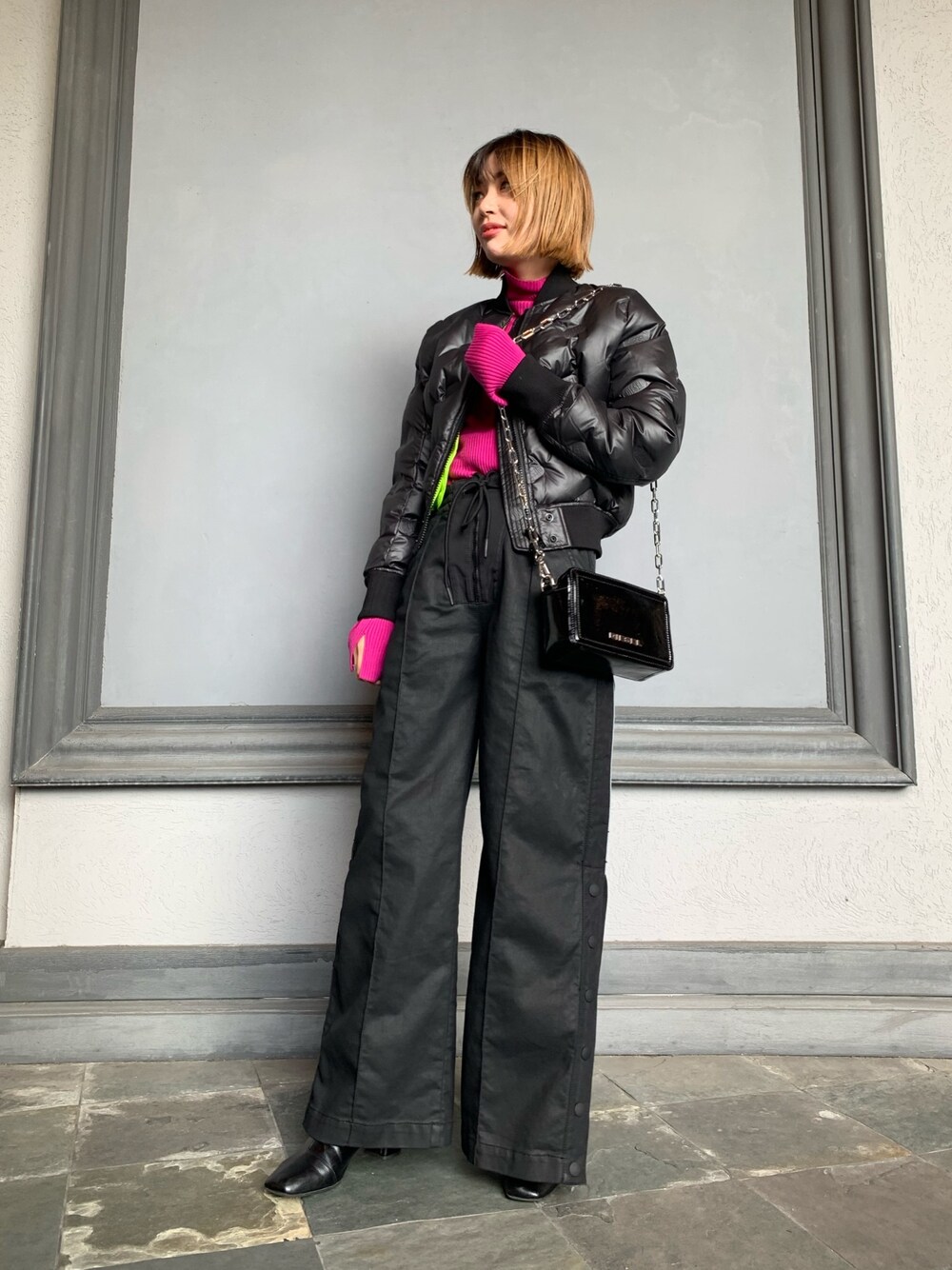 ブラックとピンクでパキッとしたコーディネートにしました💥
