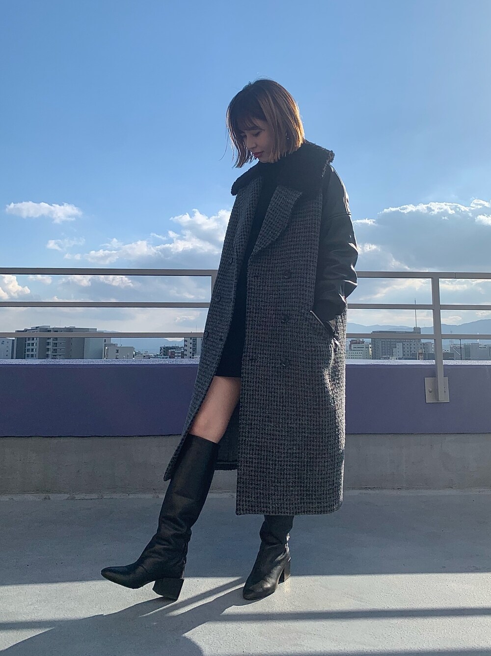 ワンピースにロングブーツで鉄板コーディネート ロングコートを合わせて大人っぽくしました🤗