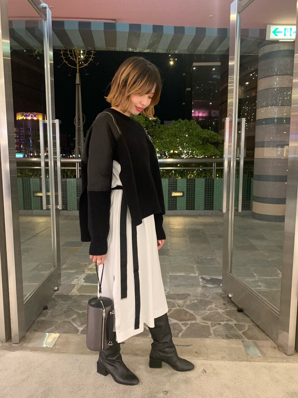 ニットにスリットが大きく入っているので下にワンピースを合わせレイヤードスタイルにしました🤗